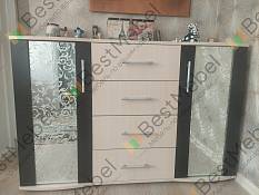 Выбирала комод на БестМебельШоп. Понравился комод Берк-6 BMS.Понравилось, что можно выбрать размер комода и рисунок на стекле.Удобные выдвижные ящики — 4 шт. И 2 отделения по бокам с полками.Комод вписался в интерьер комнаты. Цвет комода подошел к пуфику.И теперь у меня комплект мебели в одном цвете.