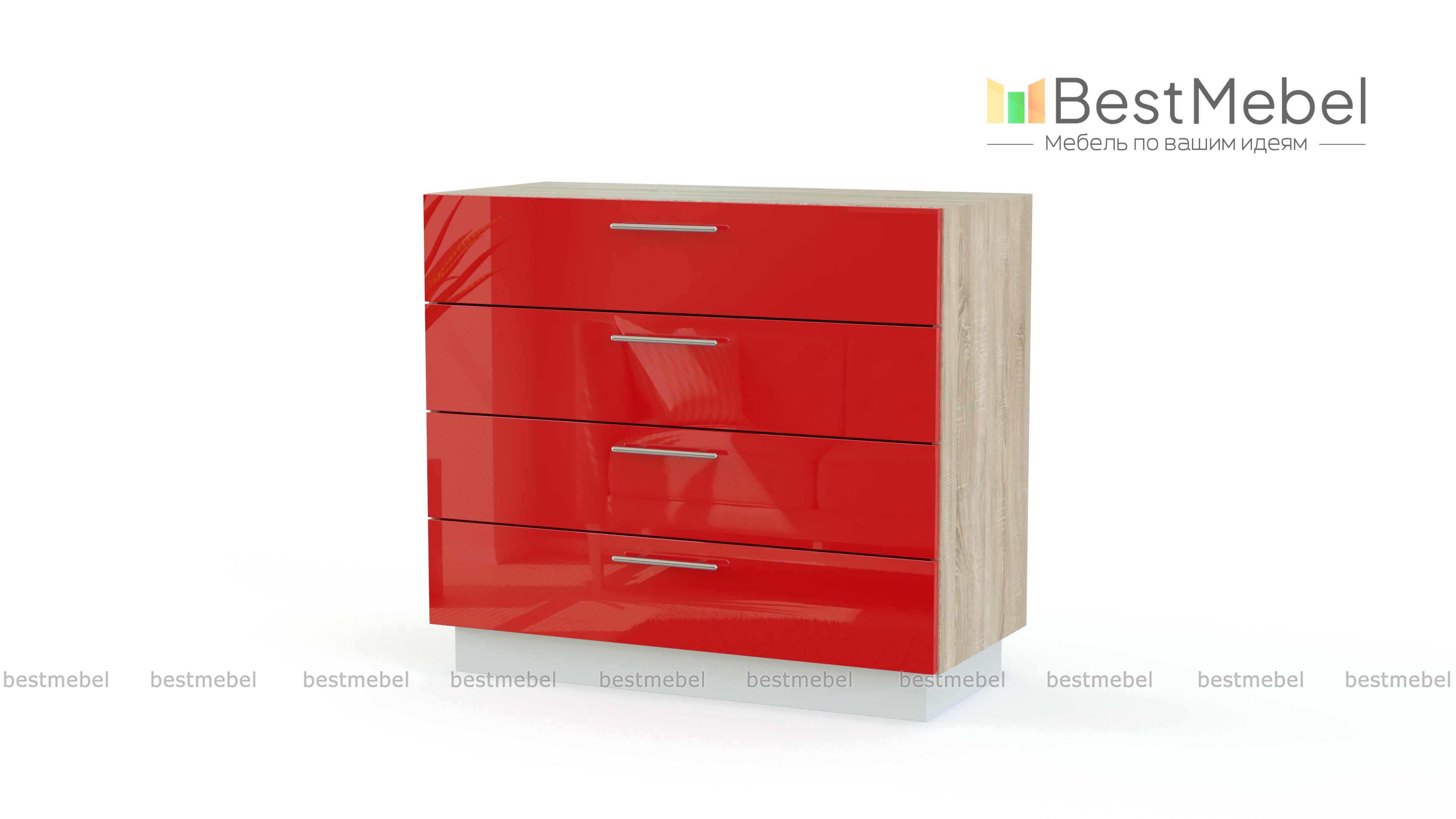 Комод красный BMS станет ярким акцентом в интерьере современной квартиры. Модель с глянцевым фасадом и светлым корпусом, располагается на высоком цоколе, который подчеркивает простую и стильную форму. Четыре выдвижных ящика предназначены для хранения всевозможных бытовых вещей и текстиля, а на столешнице особенно эффектно смотрятся предметы декора. Купить комод красный BMS с возможностью изготовления по индивидуальным размерам приглашаем на сайт нашего интернет-магазина.