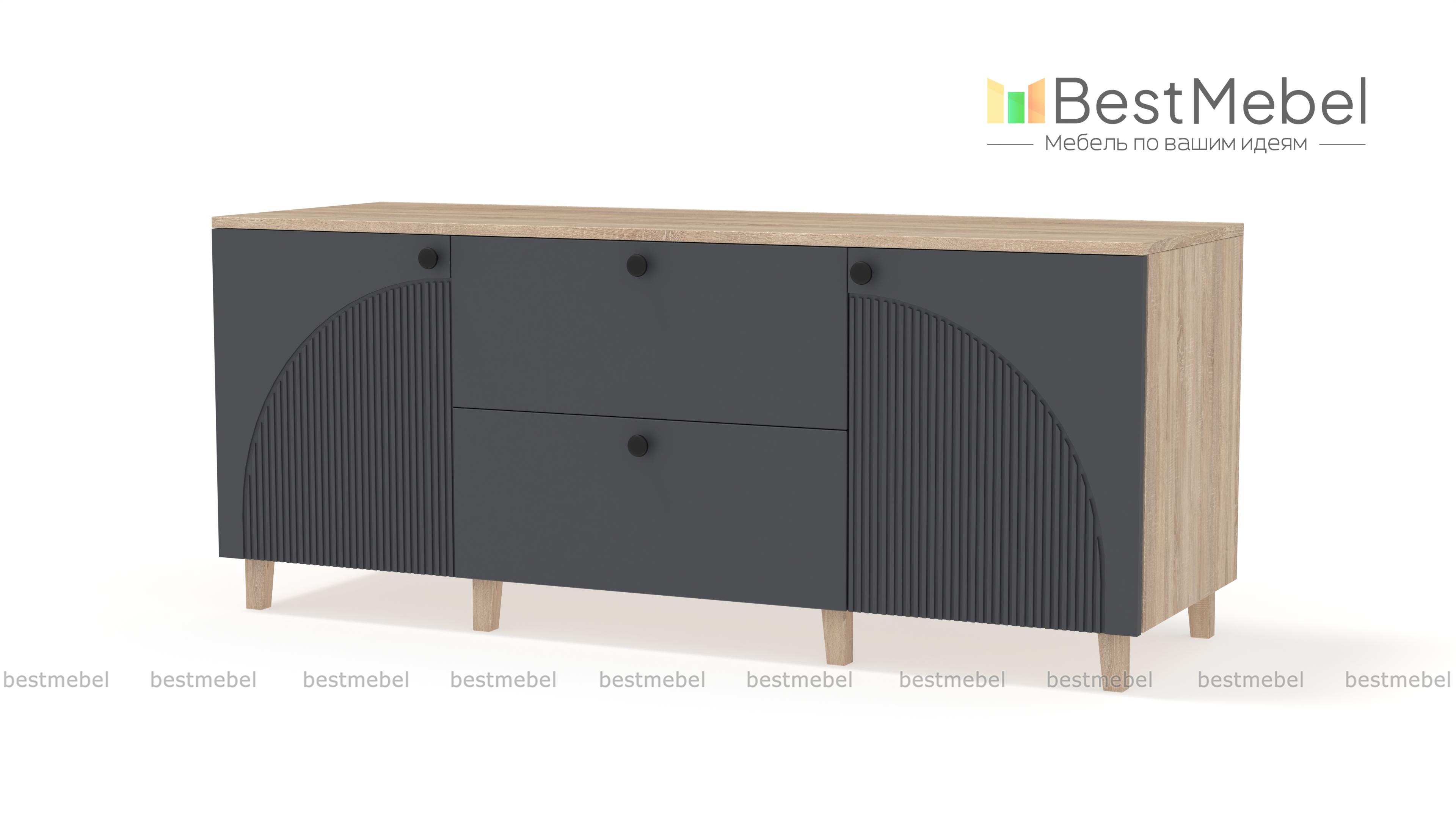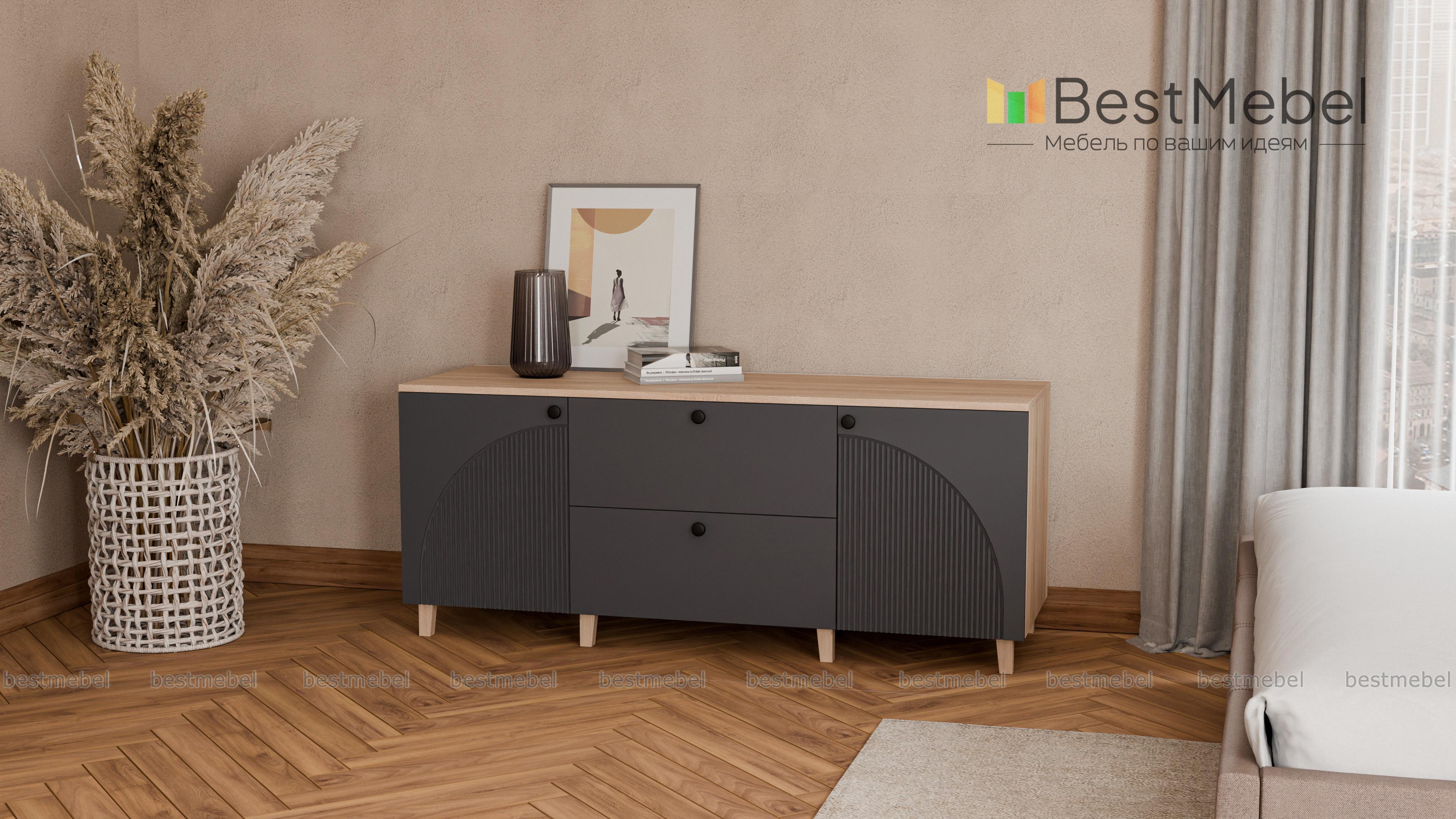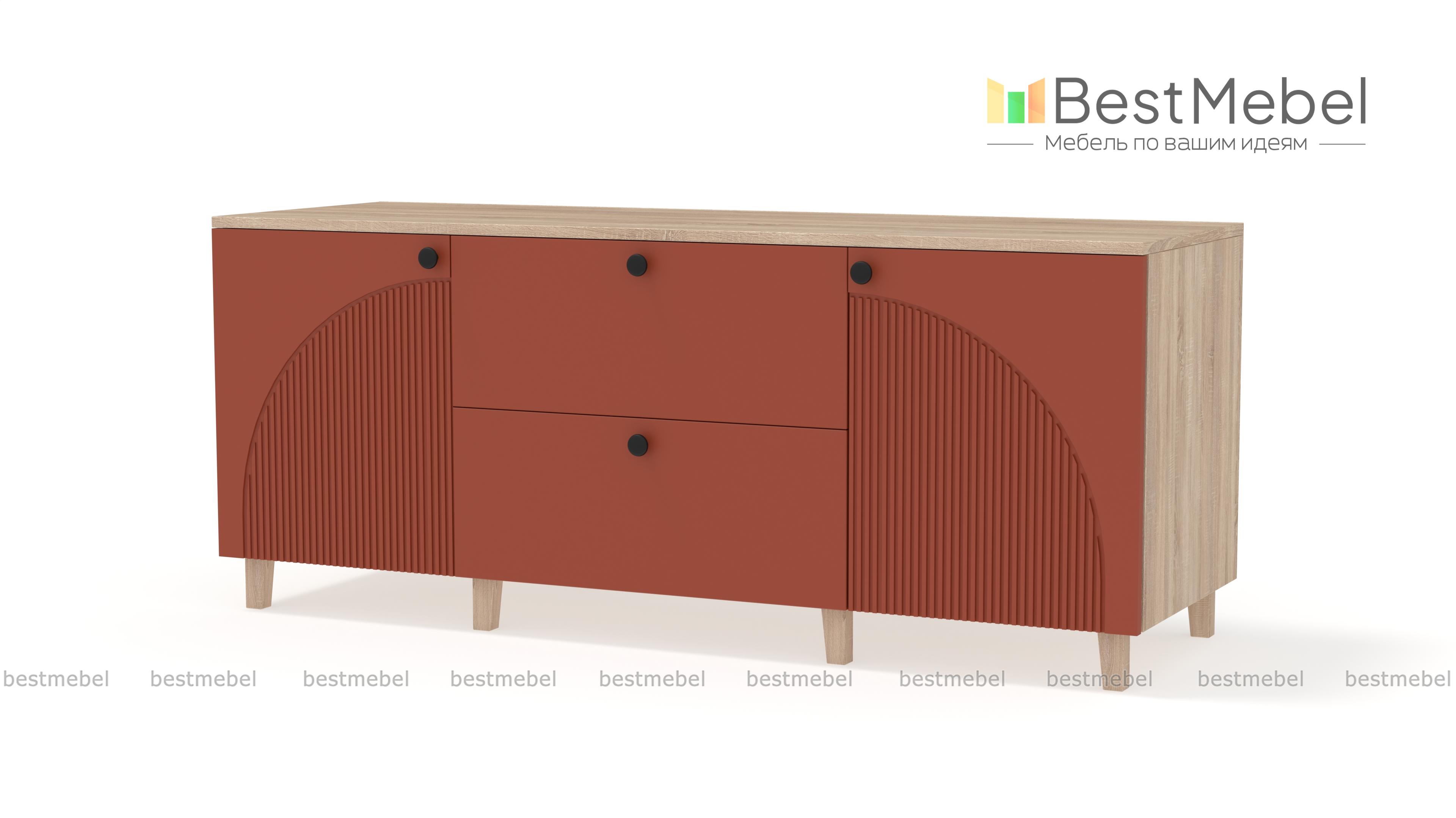 Комод Вивьен 4 BMS с высокими деревянными ножками поможет вам организовать хранение вещей и украсит интерьер. Широкий современный комод оборудован парой распашных секций с полками и двумя вместительными ящиками в центральной части. Прочный корпус изготовлен из ламинированной плиты, которая выдерживает большие нагрузки, а для фасада использован МДФ со стильным рельефом. Купить комод Вивьен 4 BMS приглашаем в наш интернет-магазин, по желанию изменив цвет и размеры.