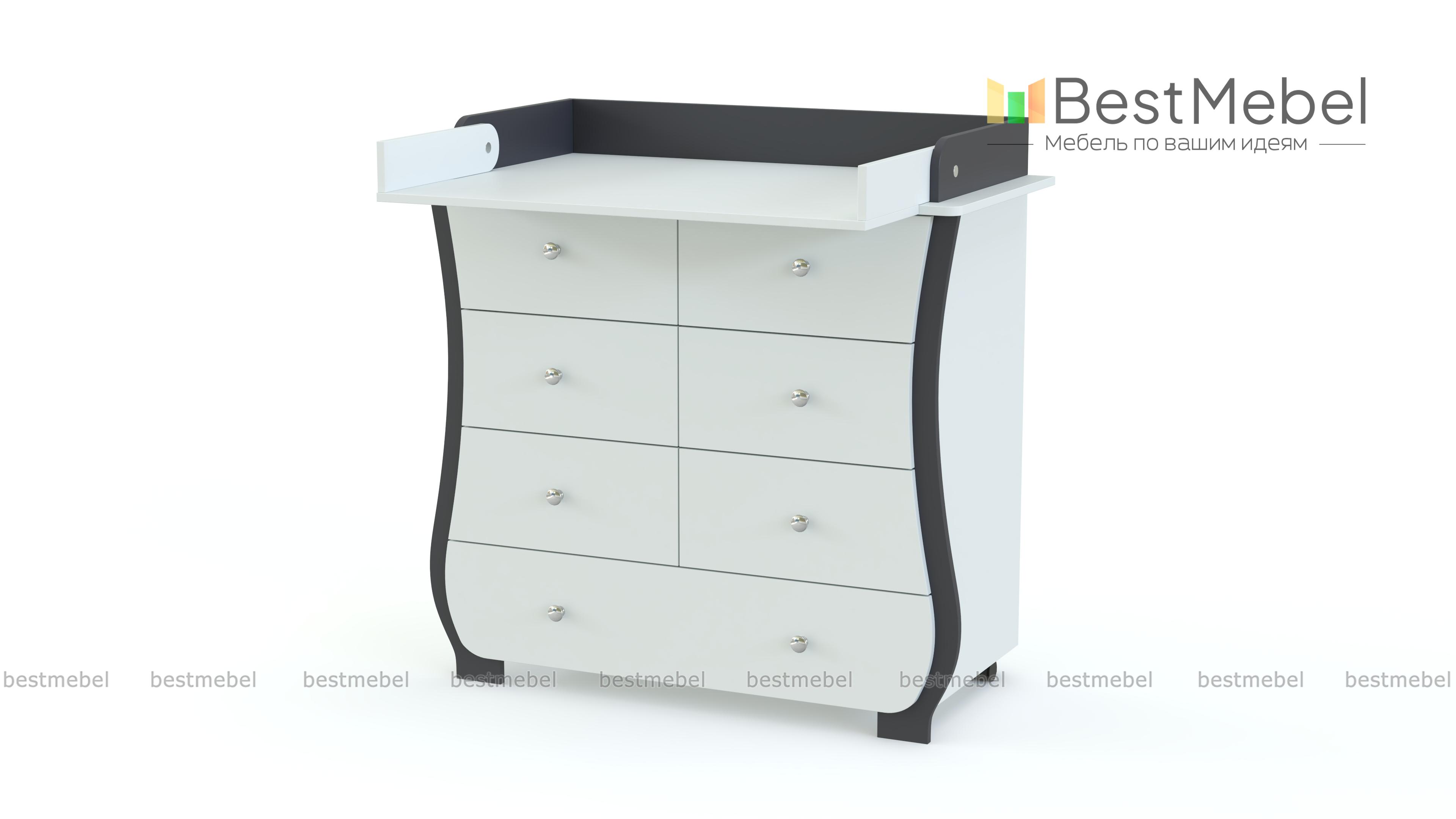 Пеленальный комод Альт 1 BMS с изящно вырезанным фасадом без острых углов украсит современную детскую и сделает уход за малышом комфортным. В одном большом и шести малых выдвижных ящиках, оснащенных ручками-кнопками, удобно хранить средства гигиены, постельное белье, одежду и игрушки. Благодаря откидному столику вы сможете увеличить пеленальную поверхность, а колесики обеспечат комоду легкость перемещения. Купить пеленальный комод Альт 1 BMS приглашаем в наш интернет-магазин, подобрав цветовое решение.