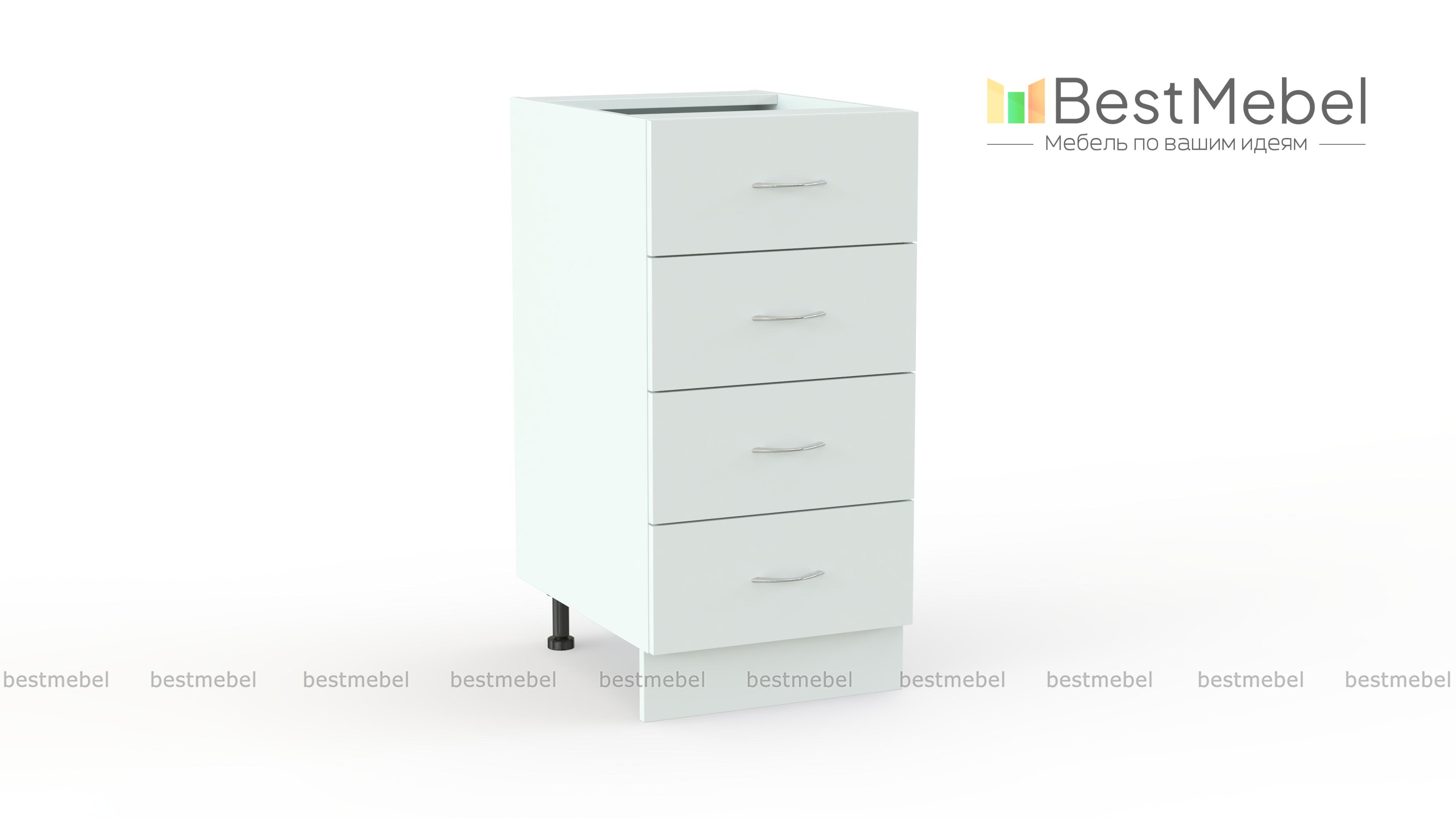 Тумба напольная Николь 4я BMS отличается классической конструкцией, незаменимой для удобного хранения мелочей. Компактная модель, оборудованная четырьмя выдвижными ящиками, разместит столовые приборы и прочие аксессуары, необходимые на кухне. Фасады практичной и стильной светлой расцветки оснащены изящными ручками и гармонично дополнят комплект в стиле кантри. Купить тумбу напольную Николь 4я BMS и сделать кухонный интерьер функциональнее вам поможет наш интернет-магазин.