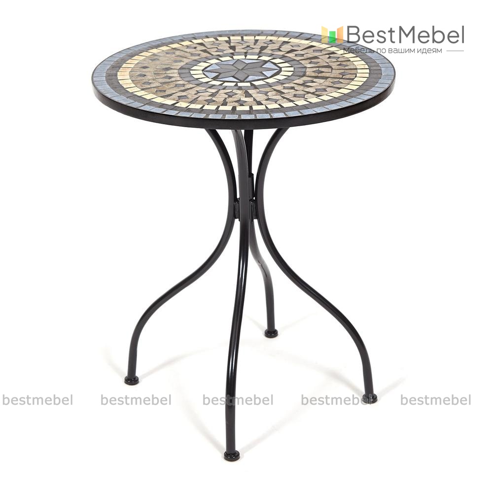 Стол Ромео вы сможете использовать как часть модульного комплекта или стильный акцент. Модель выполнена из высококачественного стального сплава, создавая прочную и визуально легкую конструкцию, которая не боится перепадов температур и солнечных лучей. Круглая столешница, декорированная оригинальным винтажным орнаментом из мозаики, поможет эффектно сервировать обед или разместить предметы декора. Купить стол Ромео для меблировки балкона, веранды или гостиной загородного дома вы сможете в нашем интернет-магазине.