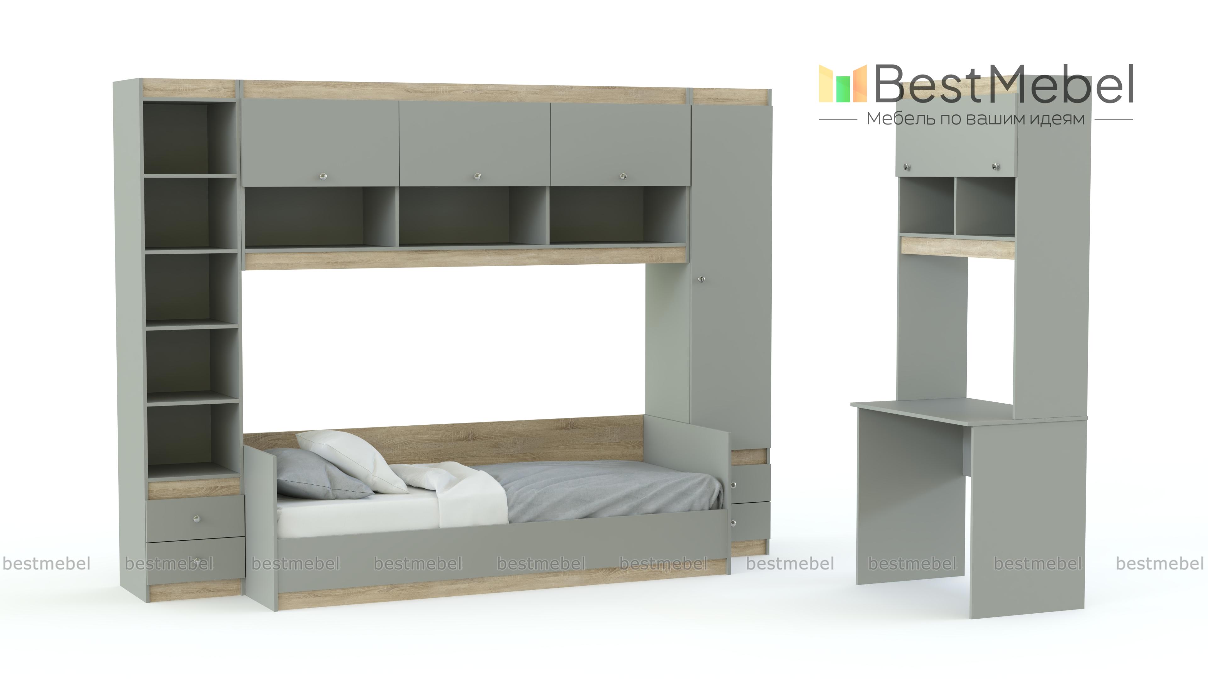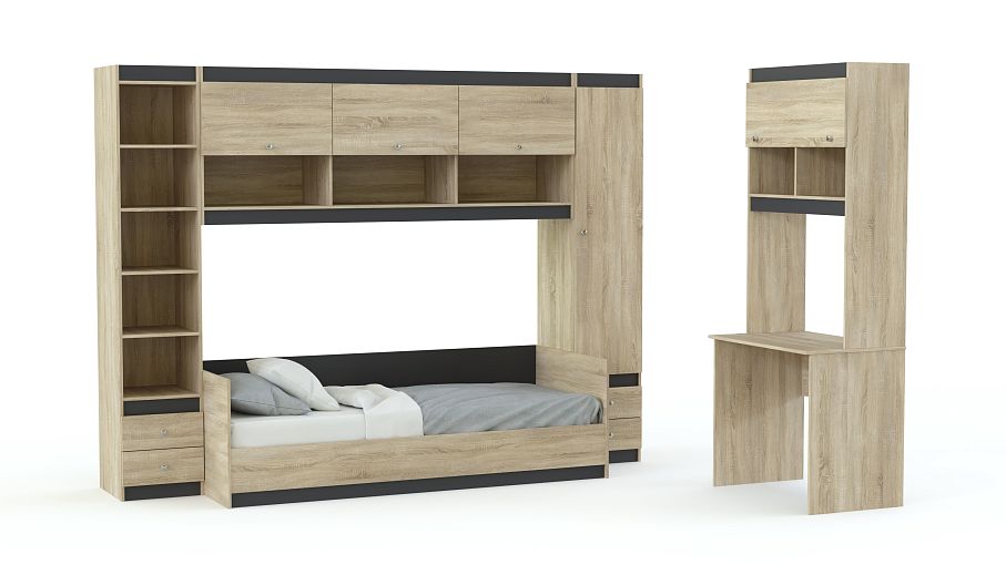 Детская модульная комната Скай-6 BMS отличается простым и эффектным современным дизайном. Цветовое решение в сочетании светлых оттенков под массив дерева и контрастных вставок создаст спокойную, комфортную для учебы и отдыха атмосферу. Декор – стильные круглые ручки. В комплекте кровать, письменный стол с надстройкой, две комбинированные колонки и антресольная секция. Купить детскую модульную комнату Скай-6 BMS вы сможете в нашем интернет-магазине, подобрав оптимальные параметры.