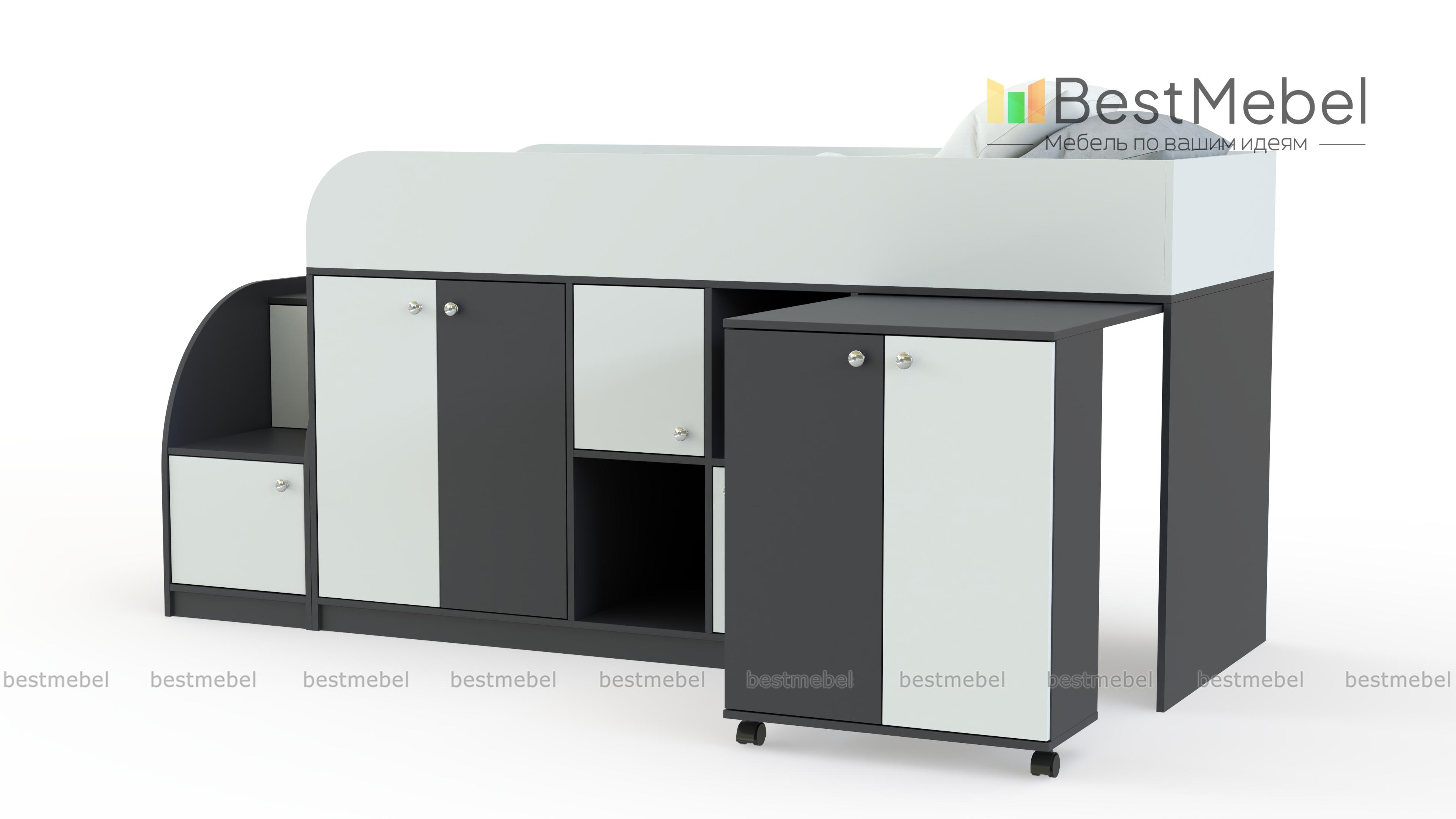 Кровать-чердак Астра мини BMS отличается высокой функциональностью, занимая минимум места. Эффективно использовать пространство детской поможет современная конструкция, включающая в себя комфортное спальное место и множество разноплановых отделений. Под кроватью второго яруса с защитными бортиками располагаются распашные отделения, ниши и выкатной столик с тумбой. Небольшая устойчивая лестница также представляет собой стеллаж и удобна для хранения игрушек. Купить кровать-чердак Астра мини BMS, которая порадует ребенка ярким дизайном, приглашаем в наш интернет-магазин.