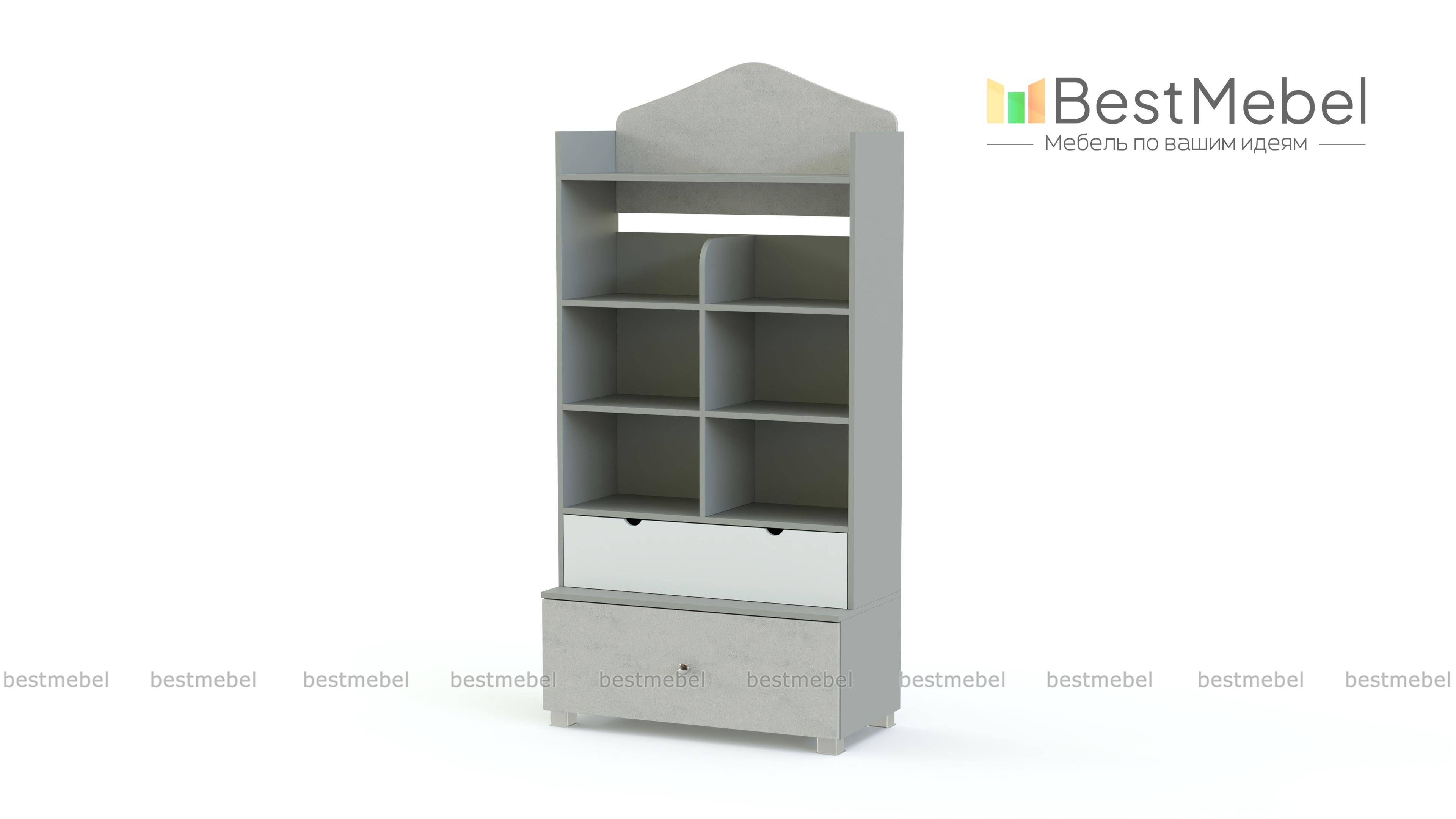 Стеллаж F-1 BMS изготовлен с учетом роста ребенка, позволяя малышам самостоятельно брать книги, игрушки и одежду. В нижней части широкого стеллажа располагаются вместительные выдвижные ящики, оснащенные удобными ручками – круглой и двумя вырезными, а в верхней – открытые полки, разделенные перегородкой. Боковины и декоративный элемент в верхней части безопасно скруглены. Купить стеллаж F-1 BMS вы сможете в нашем интернет-магазине, подобрав нужные размеры и цвет по каталогу.
