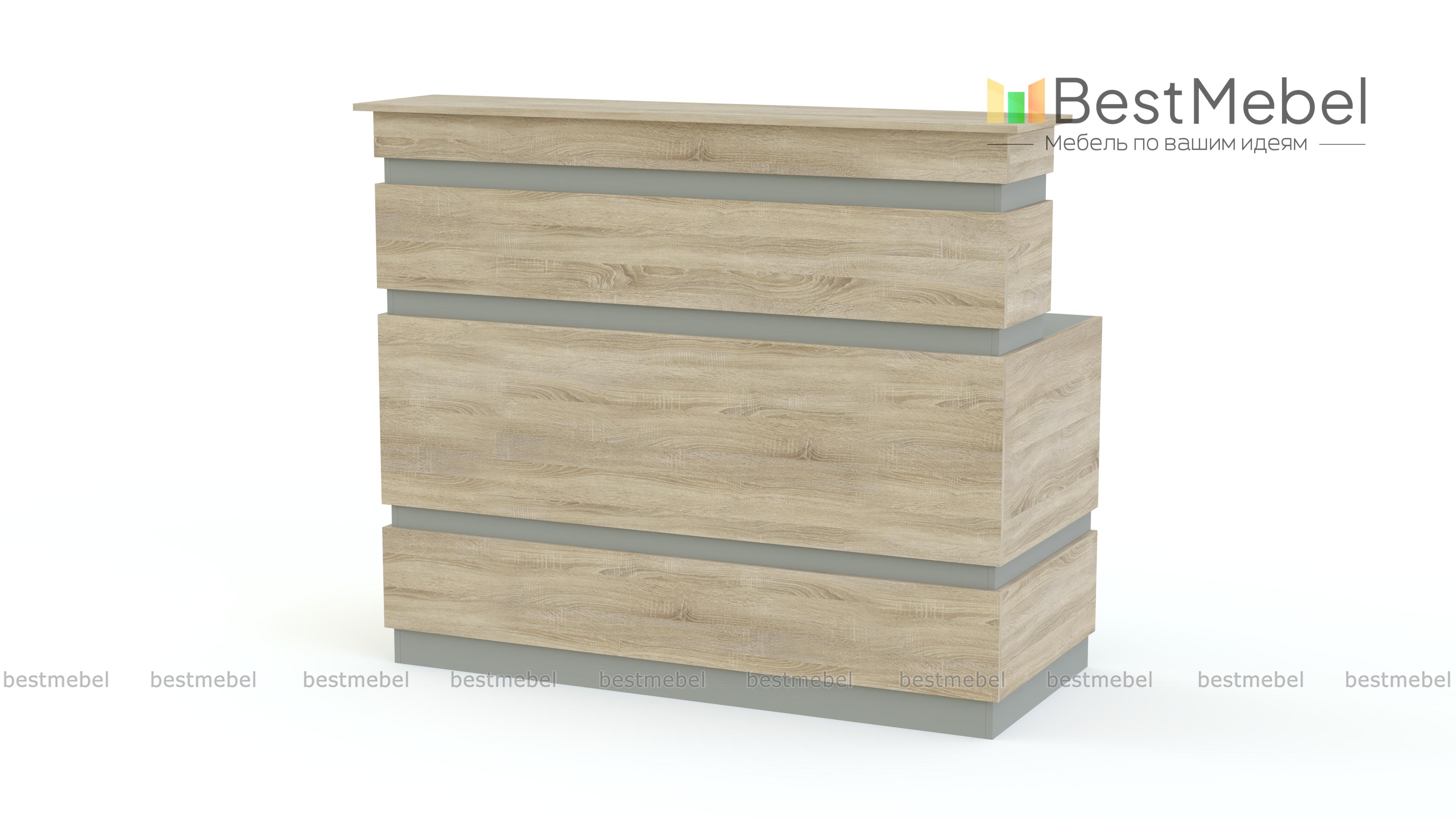 Стойка ресепшен № 53 BMS станет не только практичным дополнением интерьера, но и ярким акцентом. Лаконичная по форме, компактная модель выполнена в нестандартном сочетании графитовых цветов и подчеркнет имидж стильного салона красоты. Классическая конструкция представляет собой стол с надстройкой. Верхняя столешница будет удобна для посетителей, на нижней разместится все необходимое для работы администратора. Купить стойку ресепшен № 53 BMS приглашаем в наш интернет-магазин по приятной цене.