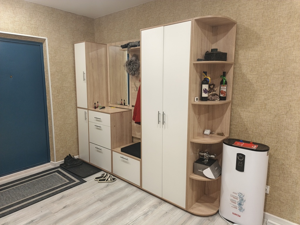 Прихожая Санторо BMS отличается минималистичным дизайном, а природные оттенки с имитацией древесной фактуры добавляют интерьеру тепла. Композиция радует большим количеством модулей: распашной шкаф, торцевой стеллаж, узкий двухдверный пенал, открытая вешалка, обувница и навесное зеркало, дополненное высокой тумбой. Светлые фасады без декора просты в уходе и долговечны. Купить прихожую Санторо BMS с учетом оптимальных размеров вы сможете в нашем интернет-магазине.