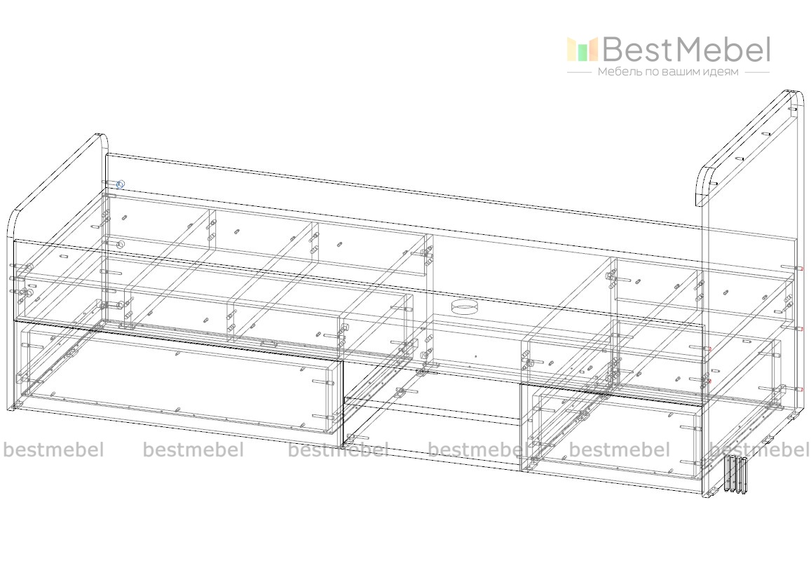 Кровать детская Ултимо Школа оснащена двумя выдвижными ящиками, спальное место 1700*600, выполнена в теплых светлых тонах.