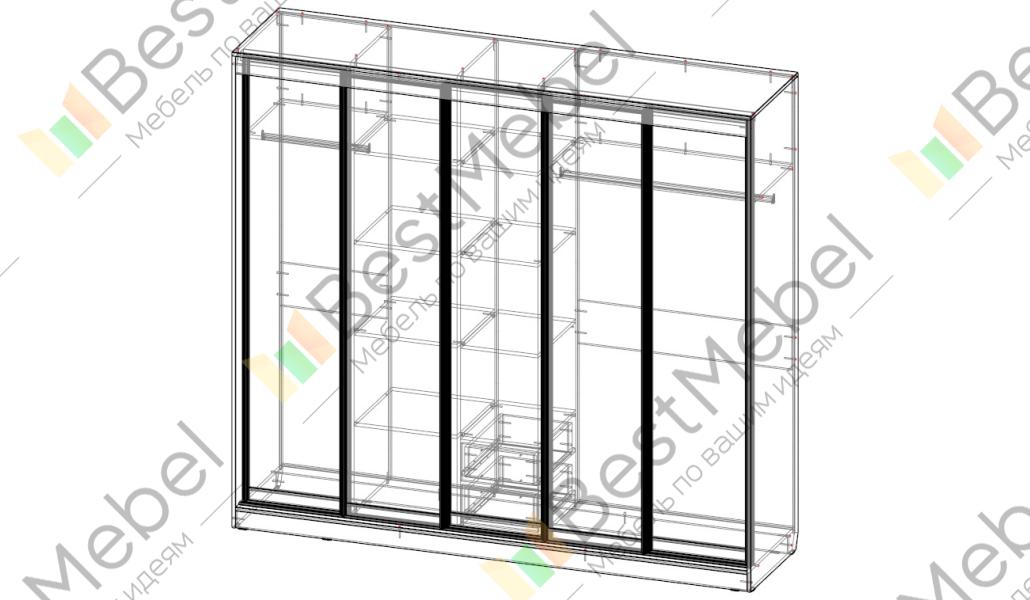 Шкаф-купе Торонто 31 BMS удобен в использовании и имеет современный дизайн, который легко сочетать с другой мебелью в доме. На фасады двух глухих и трех зеркальных створок установлены удлиненные ручки-скобы, обеспечивающие легкое открывание и играющие роль стильного акцента. Внутреннее наполнение пятидверной модели: две секции со штангами для вешалок и бельевое отделение, оборудованное полками. Купить шкаф-купе Торонто 31 BMS приглашаем на сайт нашего интернет-магазина с возможностью выбора цвета и размеров.