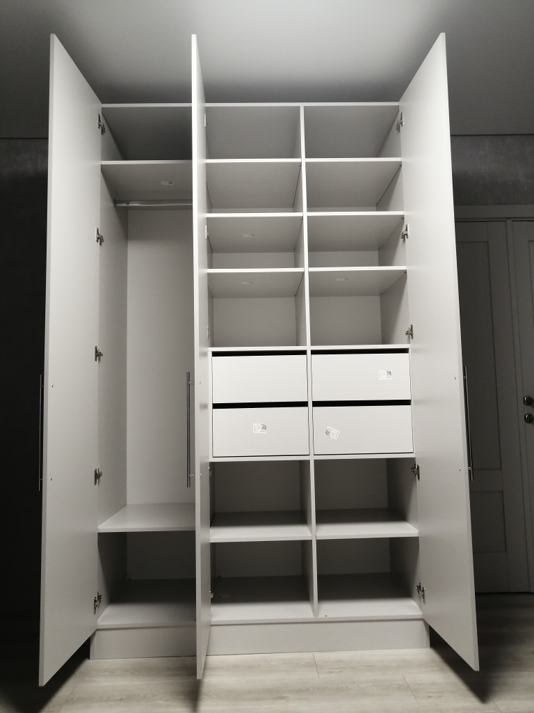 Заказывала шкаф для двух сыновей-подростков. Сделали ровнёхонько таким, как нужно — секции шкафа в моём порядке, высота выдвижных ящиков ровно на нужной высоте, чтобы не нагибаться к полу и не вставать на мысочки. Как я нарисовала на плане, так и учли. Зеркало на дверь, ручки длинные, сборка идеальная. Спасибо! Уже заказала второй шкаф, в прихожую. Жду своего красавца! Процветания вам и клиентов!