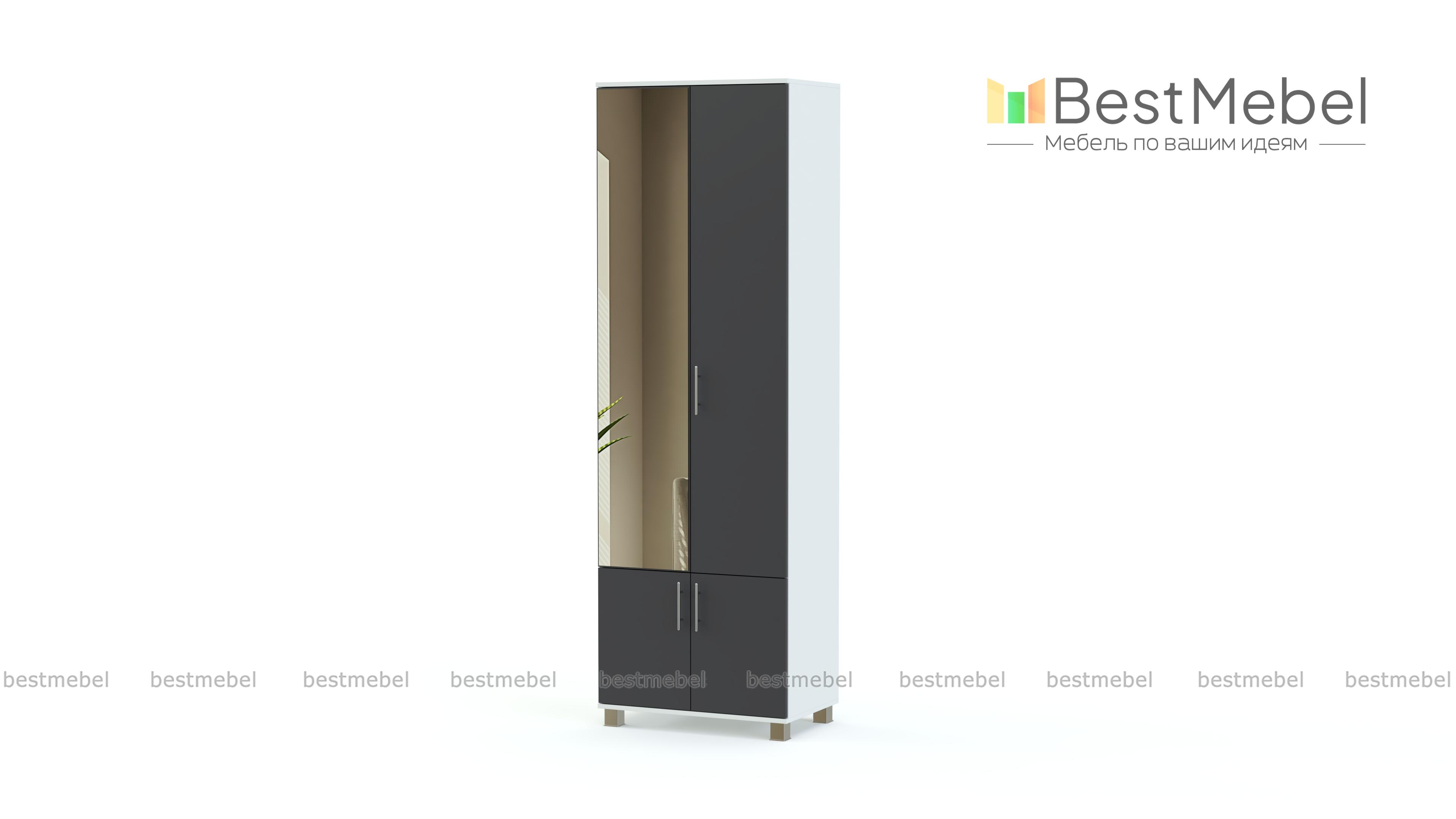 Заказ 00000569520. В узкий коридор мне нужен был шкаф глубиной 40 см. Очень удобно, что на сайте можно подобрать разные размеры, и что менеджеры перезванивают для уточнения деталей заказа. Специально для верхней одежды я брала выезжающую широкую перекладину, влезает 5-6 длинных пуховиков и зимних курток. Плюс внутри шкафа полка для головных уборов. Серый цвет выглядит просто, без изысков. Зеркало очень вписалось в интерьер, не занимает места на стене. Я довольна возможностью подобрать нестандарт!