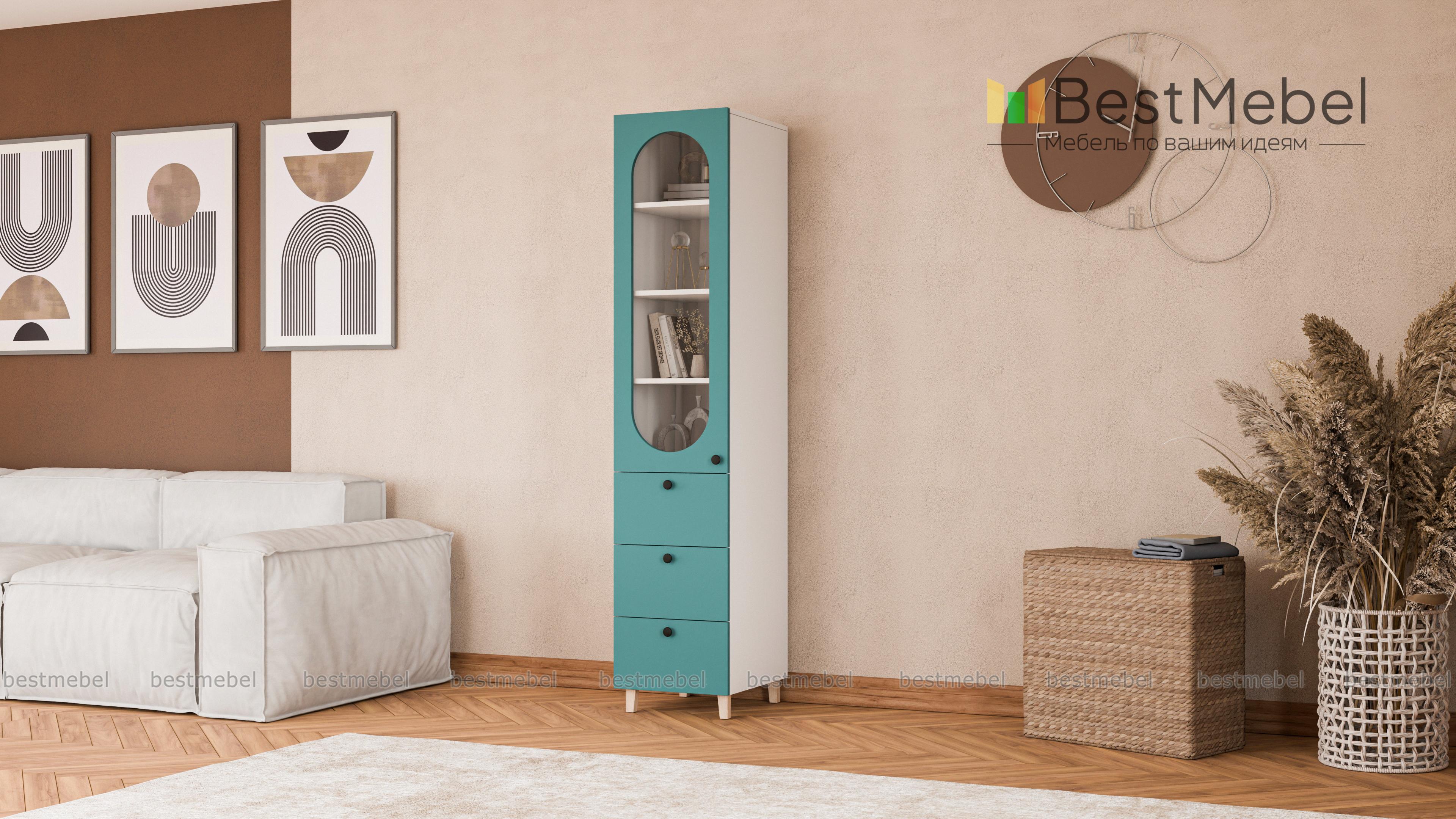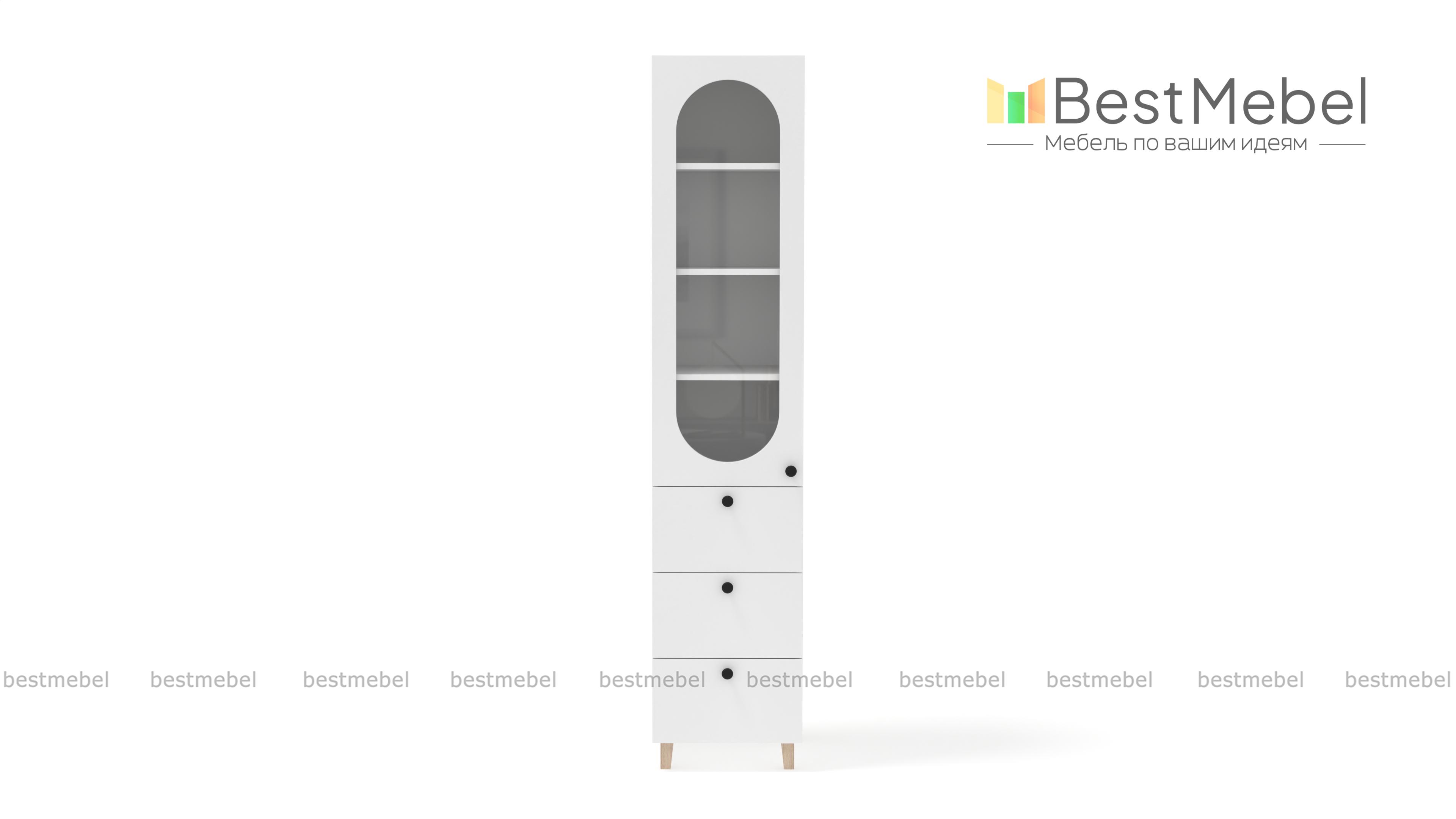Шкаф-пенал Рене 1 BMS дополнит гостиный интерьер, рабочую зону или столовую. Элегантная витрина с овальным вырезом и три выдвижных ящика разместят книги, посуду и декор, а также множество мелочей. На износостойком темном фасаде из МДФ — удобные в эксплуатации круглые ручки, высокие деревянные опоры шкафа выполнены в цвет корпуса. Купить шкаф шкаф-пенал Рене 1 BMS с учетом необходимых размеров вы сможете по доступной цене на сайте нашего интернет-магазина.