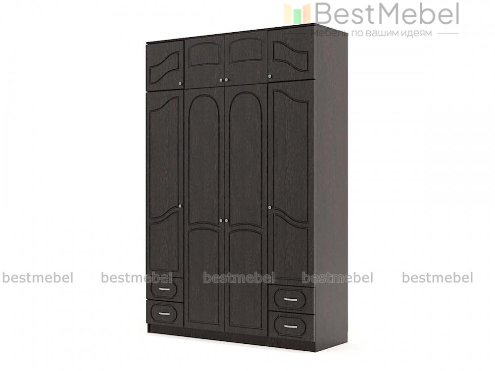 Отличным решением приобрести шкаф Поларис 4.6А BMS будет для большой семьи. Модель очень вместительна за счет центрального платяного шкафа, двух симметрично расположенных отделений с полками для хранения личных вещей, антресольного отделения с 4 закрывающимися дверцами для одеял и подушек, а также 4 выдвигающихся ящиков, в которых с удобством можно расположить нательное белье. Купить недорого шкаф Поларис 4.6А BMS можно в нашем интернет-магазине, предварительно подобрав подходящее Вам цветовое решение.