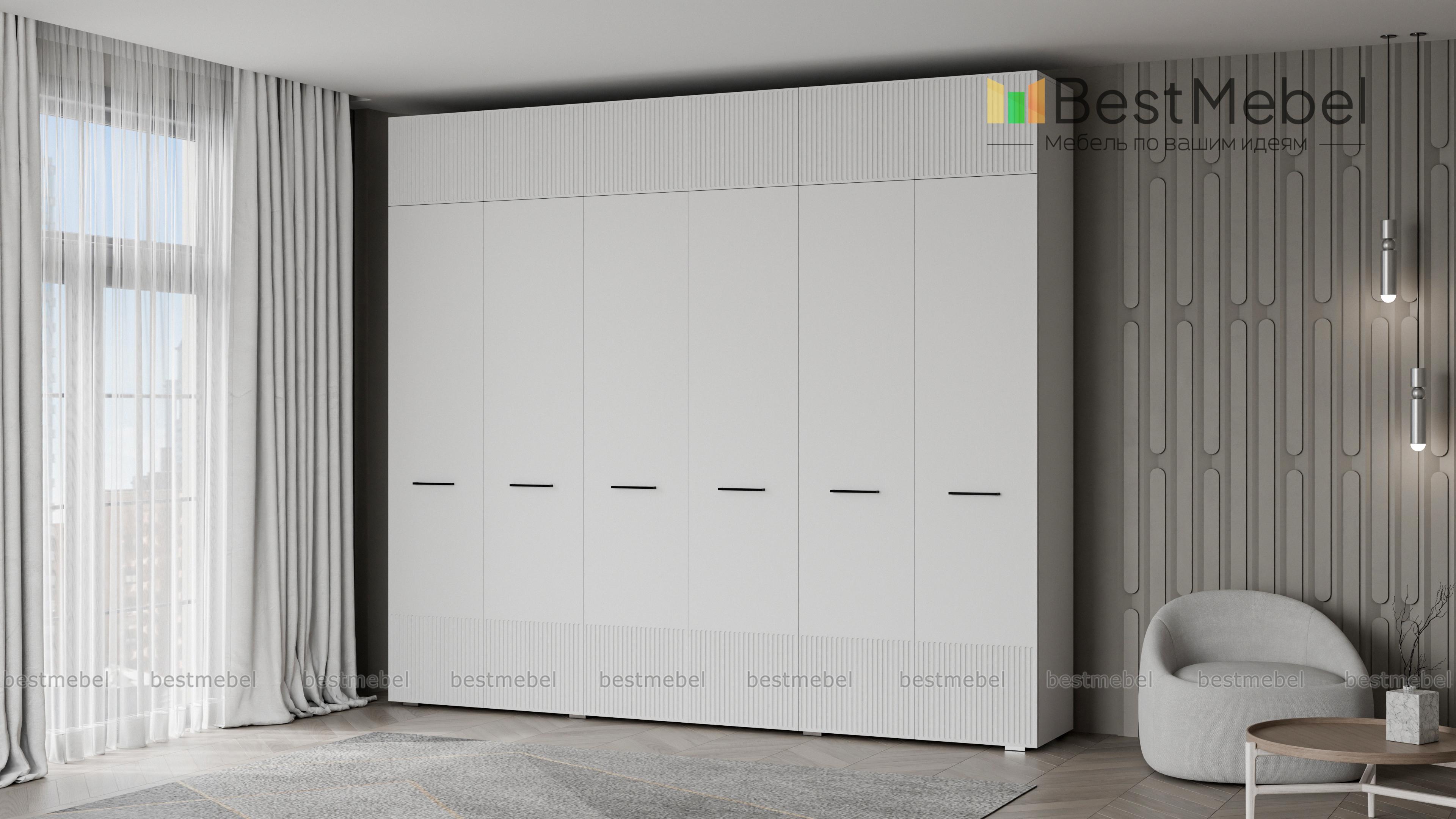 Шкаф распашной Декарт 12 BMS — это вместительный современный гардероб с антресолью. В двух секциях с перекладинами и двух бельевых отделениях можно хранить одежду на вешалках и сложенные вещи, а то, что вы редко используете, убрать на верхние полки. Светлый, рифленый по низу и верху фасад шкафа оснащен стильными поперечными ручками. Купить шкаф распашной Декарт 12 BMS вы сможете на сайте нашего интернет-магазина с изготовлением по индивидуальным размерам.