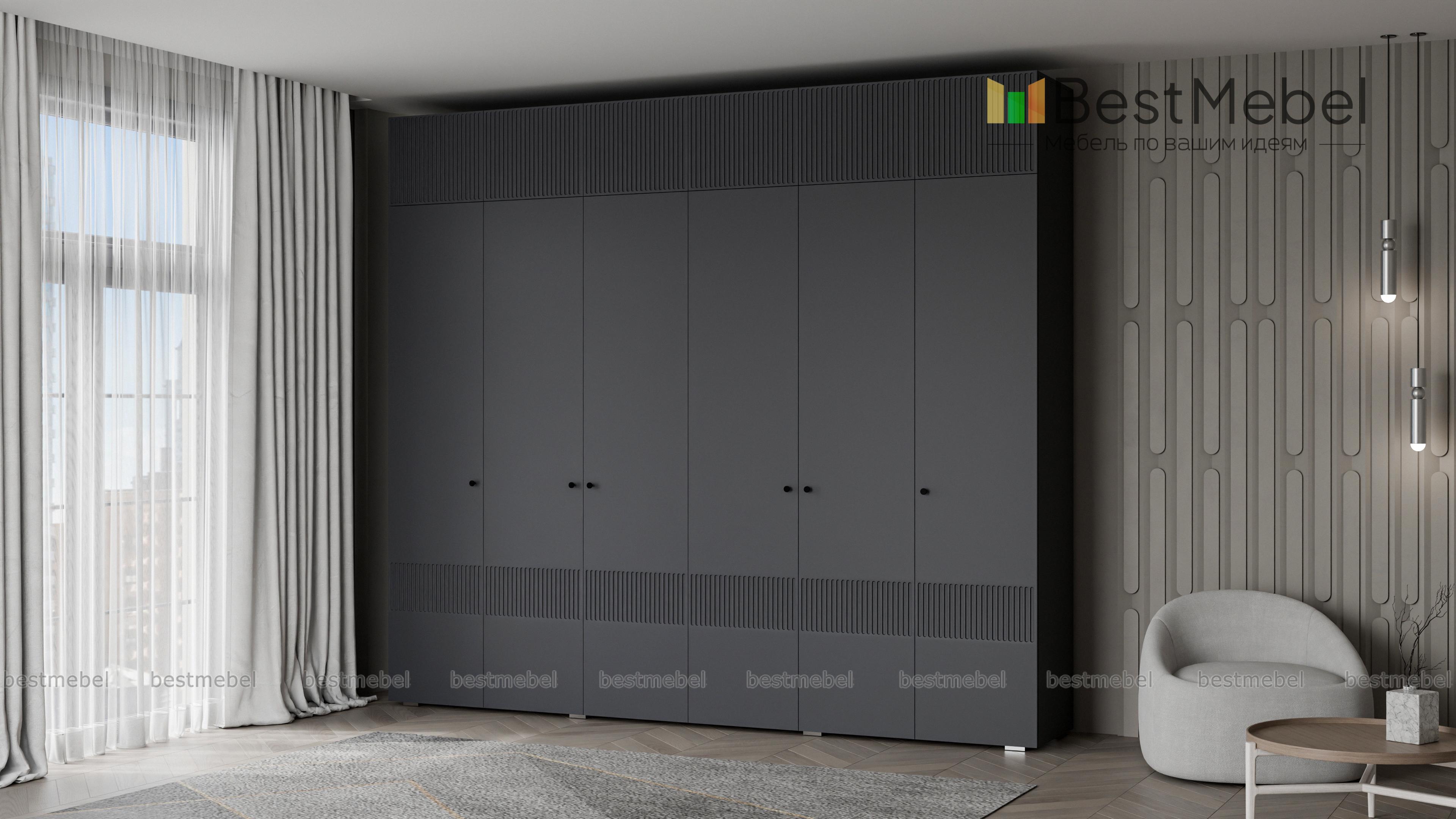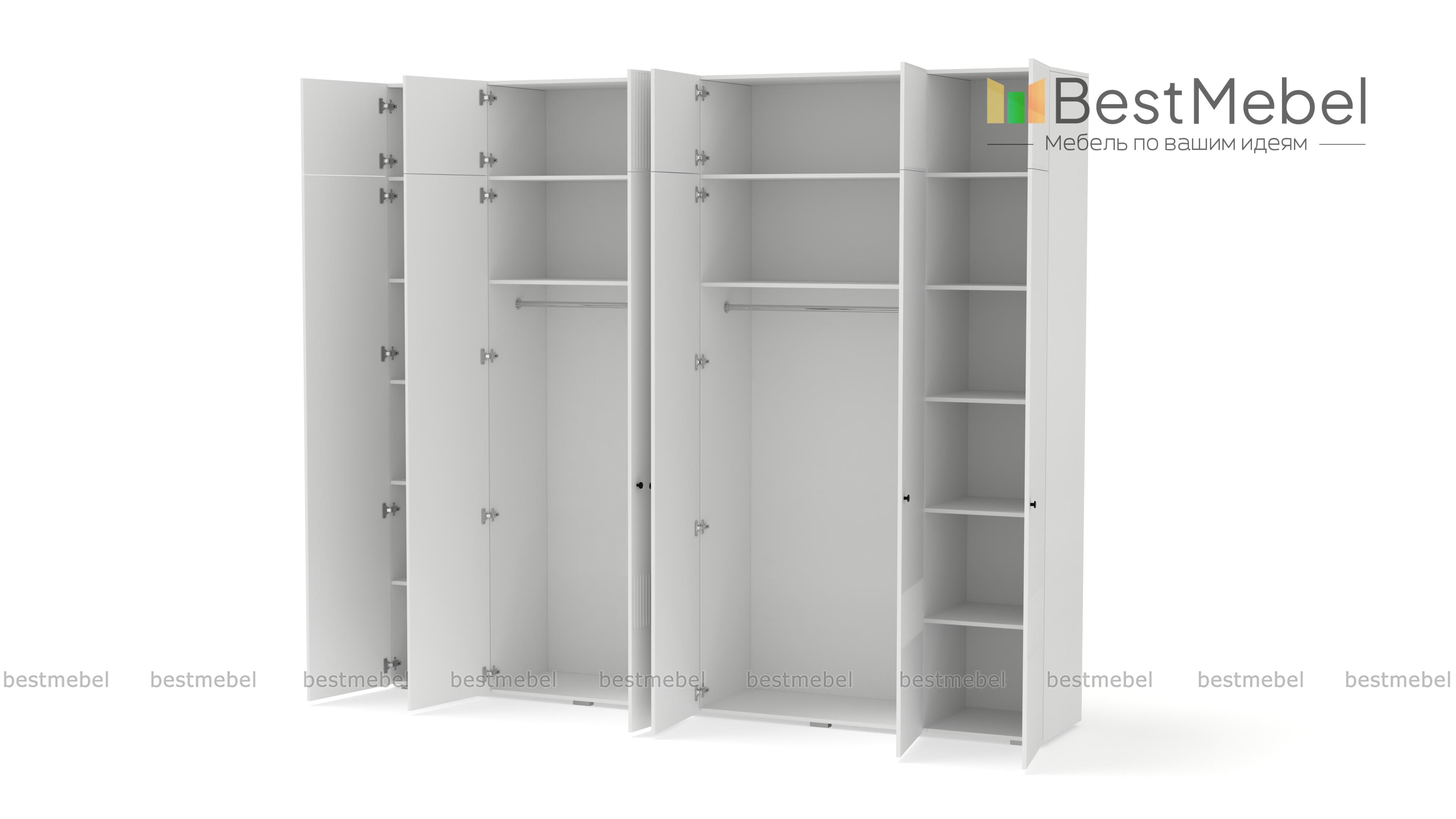Шкаф распашной Джосс 12 BMS сохранит в порядке гардероб семьи. Шестидверная конструкция с двумя платяными отделениями, расположенными в центре, двумя бельевыми и вместительной антресолью оптимально подходит для хранения одежды и обуви двух человек. Выполненный в комфортной гамме, шкаф имеет стильную рельефную отделку по фасаду. Купить шкаф распашной Джосс 12 BMS вы сможете на сайте нашего интернет-магазина, подобрав нужные размеры, цвет и компоновку.