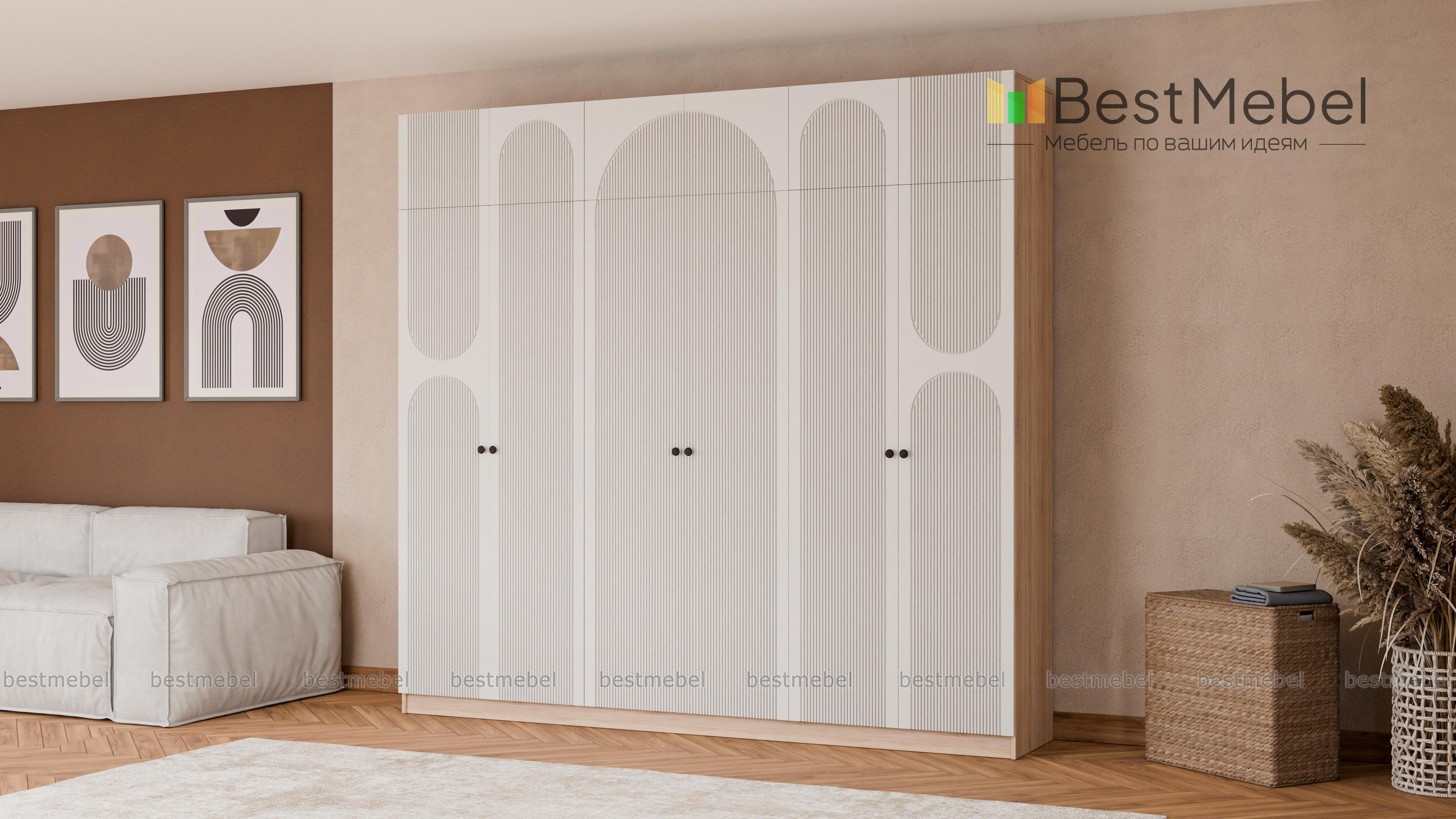 Шкаф распашной Рене 32 BMS с антресолью предоставляет еще больше места для хранения ваших вещей. Дополнительные секции сверху позволяют разместить в этом шестидверном шкафу как одежду и обувь, так и объемные постельные принадлежности. Светлые тона скрадывают габариты модели, а фрезеровка и арочные вырезы на фасадах добавляют легкости. Купить шкаф распашной Рене 32 BMS вы сможете на сайте нашего интернет-магазина в нужном размере и любых оттенках из каталога.