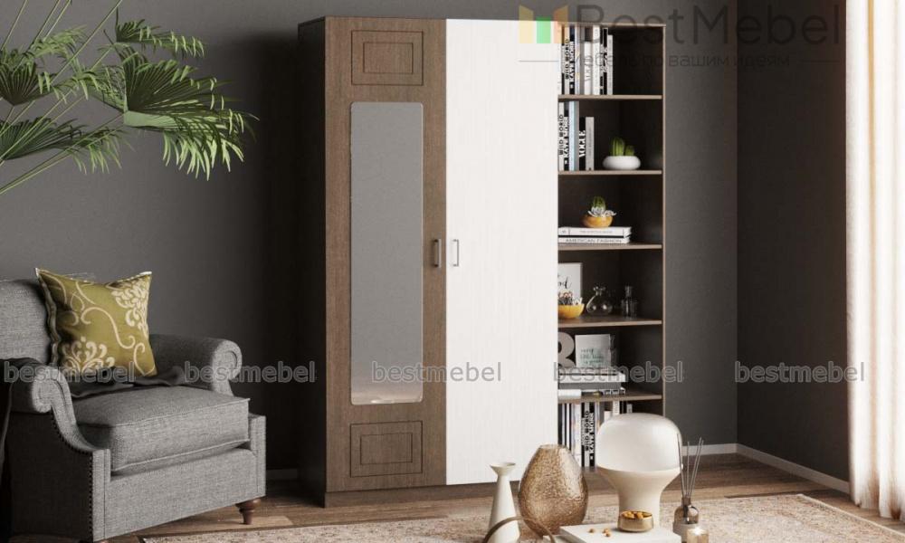 Шкаф с зеркалом Анастасия 4 BMS отличается особенной вместительностью благодаря комбинированной конструкции и элегантным современным дизайном. Двухдверное платяное отделение со штангой дополнено стеллажом с открытыми полками для необходимых в зоне быстрого доступа вещей. Фрезерованные фасады выполнены в контрастных тонах, одна из створок оборудована незаменимым для примерок ростовым зеркалом. Купить шкаф с зеркалом Анастасия 4 BMS для комфортного спального интерьера приглашаем в наш интернет-магазин.