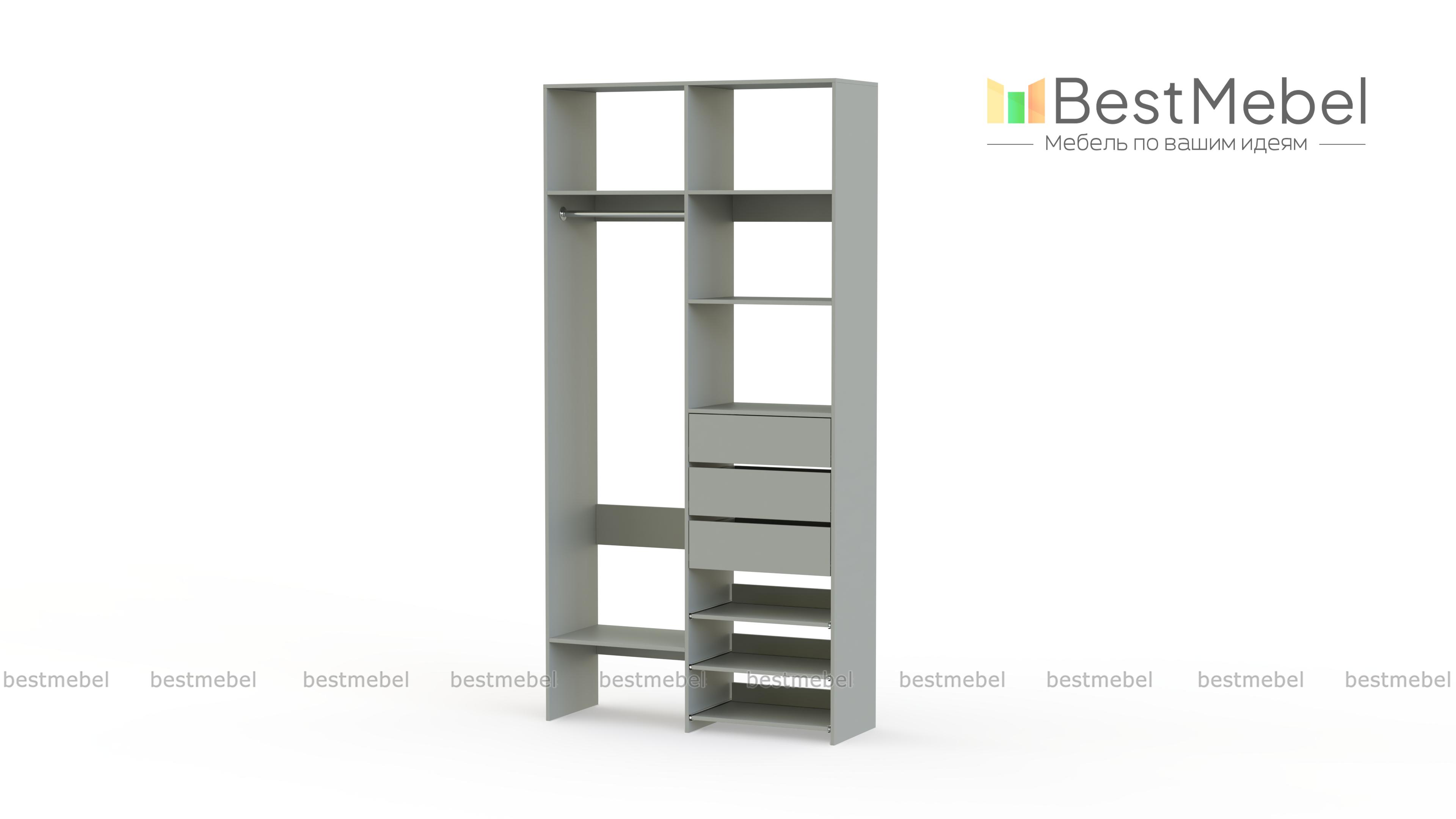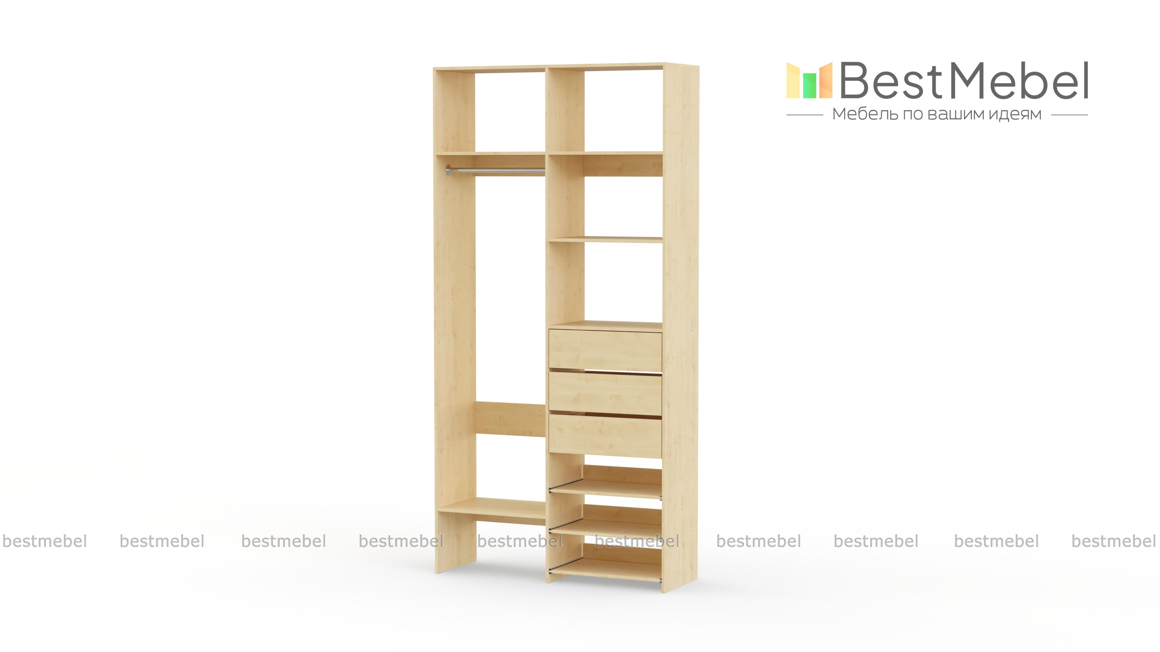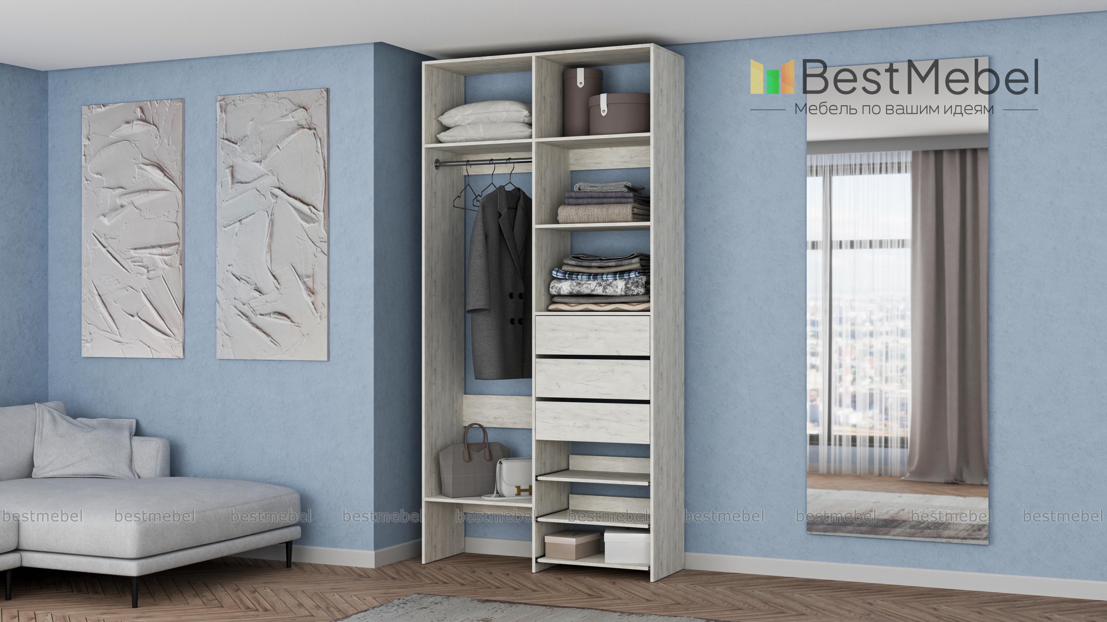 Стеллаж для одежды Мирта 84 BMS обеспечит базовому гардеробу компактное и бережное хранение. Платяная штанга, три ящика, полки стационарные и выдвижные располагаются на удобной для ежедневного пользования высоте. Благодаря небольшой ширине стеллаж легко впишется в ограниченное пространство гардеробной, маленькой спальни или прихожей. Купить стеллаж для одежды Мирта 84 BMS вы сможете недорого в нашем интернет-магазине, выбрав подходящий размер и цвет.