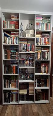 Заказ 00000201823, изделие Стеллаж Эльбрус-3 BMS (1268х2350х220).Нужен был вместительный и не занимающий много места стеллаж. Стеллаж Эльбрус именно такой и оказался. Поместилось много книг, и места в коридоре он занял минимум.Вписался по цвету идеально.Изготовлен был по моим размерам, сроки поставки были согласованы. Привезли полный комплект без брака. Покупкой остались довольны.