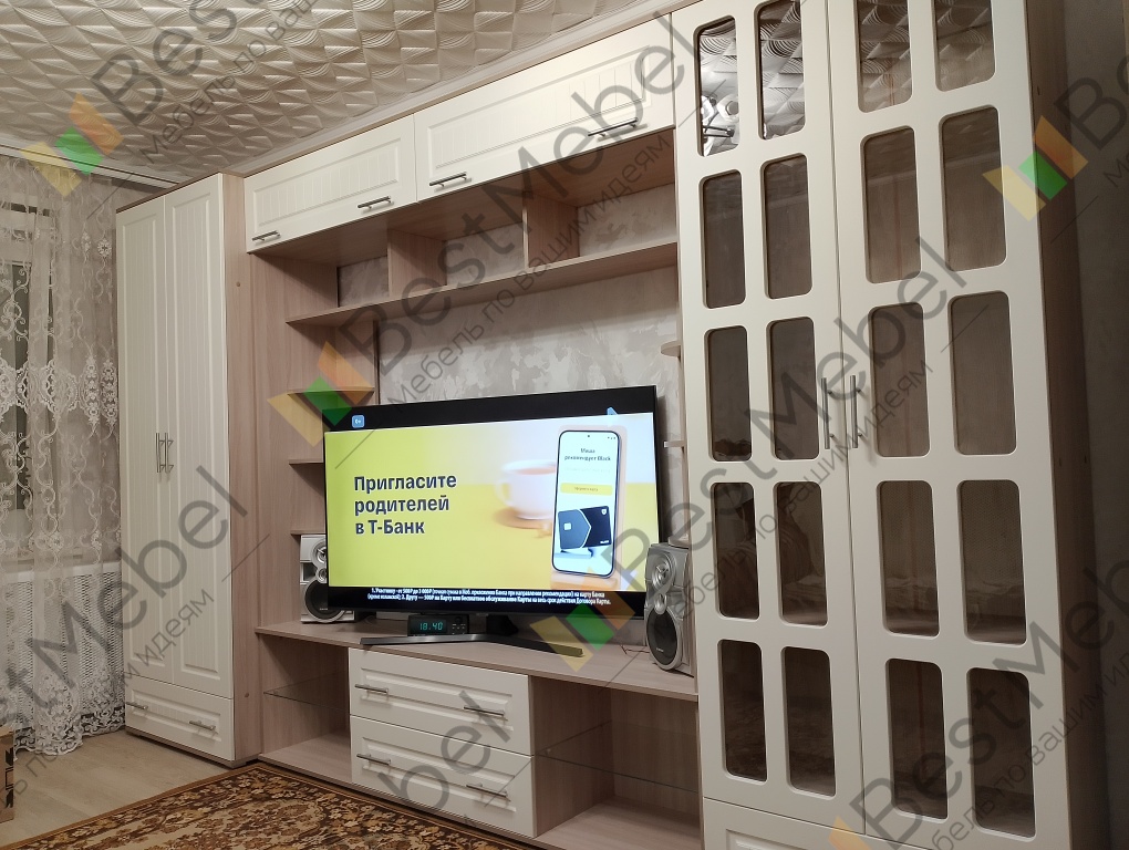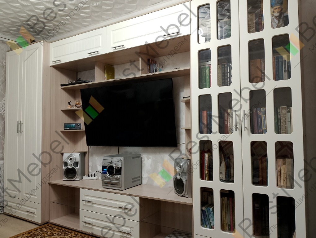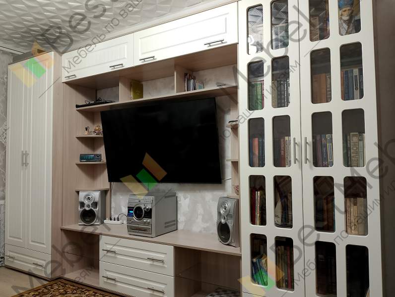 Заказ № 1216860Отличная стенка, соответствует всем моим требованиям: большая тумба под TV, шкаф для одежды и книжный шкаф. Удобно, что можно выбрать разную глубину шкафов.