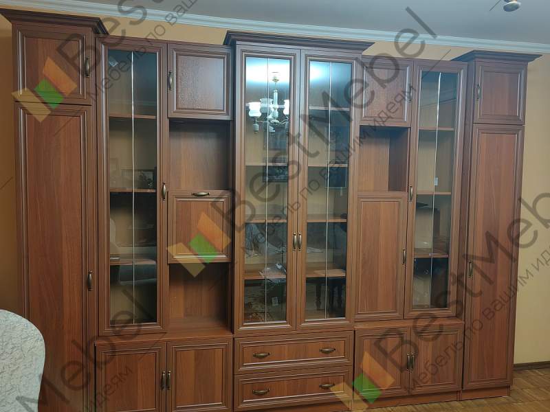 Стенка в гостиную Полонез 2 BMS порадует поклонников классического стиля не только элегантным декором, но и высокой функциональностью. Эффектная крупногабаритная модель с рамочными фасадами, имитирующими массив ореха, украшена фурнитурой под бронзу и изящными карнизами. Разместить домашний текстиль, книги, посуду и интерьерные мелочи помогут разноплановые отделения – глухие распашные, витринные, выдвижные ящики и открытые полки. Купить стенку в гостиную Полонез 2 BMS вы сможете в нашем интернет-магазине по выгодной цене.