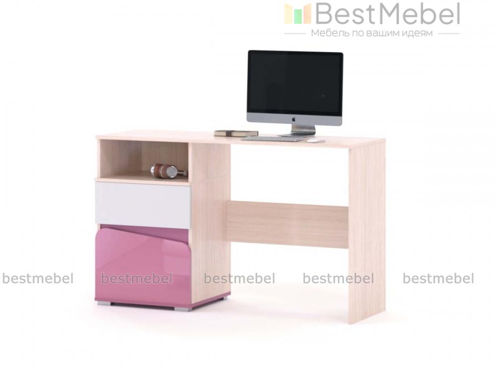 Стол письменный Алиса BMS поможет обустроить удобное рабочее место в комнате девочек. Модель оборудована просторной прямоугольной столешницей, на которой разместятся под рукой письменные принадлежности, и тумбой с нишей и двумя выдвижными ящиками разных размеров. Выполненный в светлых древесных тонах, столик декорирован контрастными вставками и гармонично впишется в современный детский интерьер. Купить стол письменный Алиса BMS приглашаем в наш интернет-магазин.
