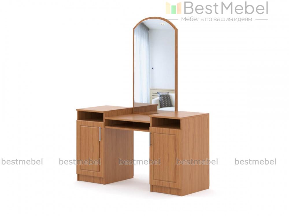 Отличное дополнение к спальному гарнитуру, которое создано красивым, для того чтобы Вы сами смогли стать немного красивее. Купить стол туалетный Джорджия СБ-1144 BMS стоит в спальню любого размера, для того чтобы иметь личное пространство для косметических процедур. В этом поможет великолепное просторное зеркало, которое располагается в центральной части над эргономичной столешницей. По бокам располагается пара шкафчиков с закрытыми полками. Распашные дверцы оборудованы привлекательными ручками, над дверцами располагаются открытые полки.