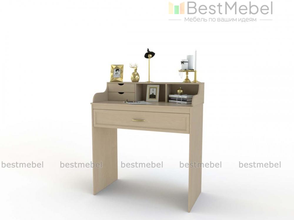 Стол туалетный Гера 25 BMS отличается изящным классическим дизайном и компактными размерами. Столик станет прекрасным выбором для небольших спален и сделает уход за собой максимально комфортным. Модель оборудована просторным выдвижным ящиком для хранения косметики и аксессуаров, а столешницу дополняет надстройка с фигурно вырезанными боковинами, нишами и двумя мини-ящиками. Выполненный в светлых тонах, стол декорирован легкой фрезеровкой. Купить стол туалетный Гера 25 BMS приглашаем в наш интернет-магазин.