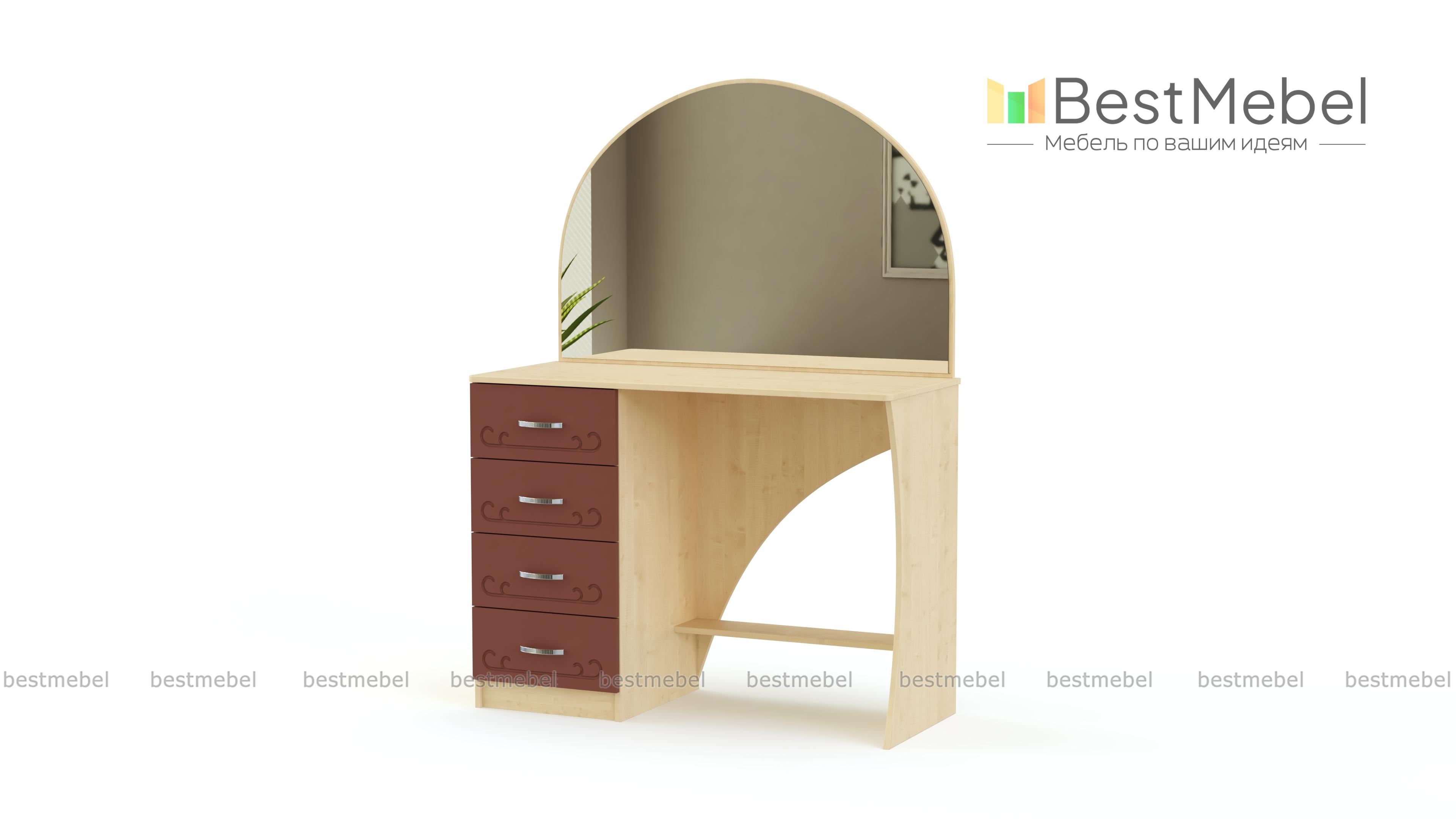 Стол туалетный Ланистер 18 BMS украсит интерьер спальни в классическом стиле и сделает уход за собой максимально комфортным. Изящная модель, выполненная в универсальном светлом оттенке, декорирована по фасаду легкой фрезеровкой. Столик оборудован тумбой с четырьмя выдвижными ящиками для хранения мелочей, нижней полкой, просторной столешницей и большим скругленным зеркалом. Купить стол туалетный Ланистер 18 BMS по лучшей цене вы сможете в нашем интернет-магазине.