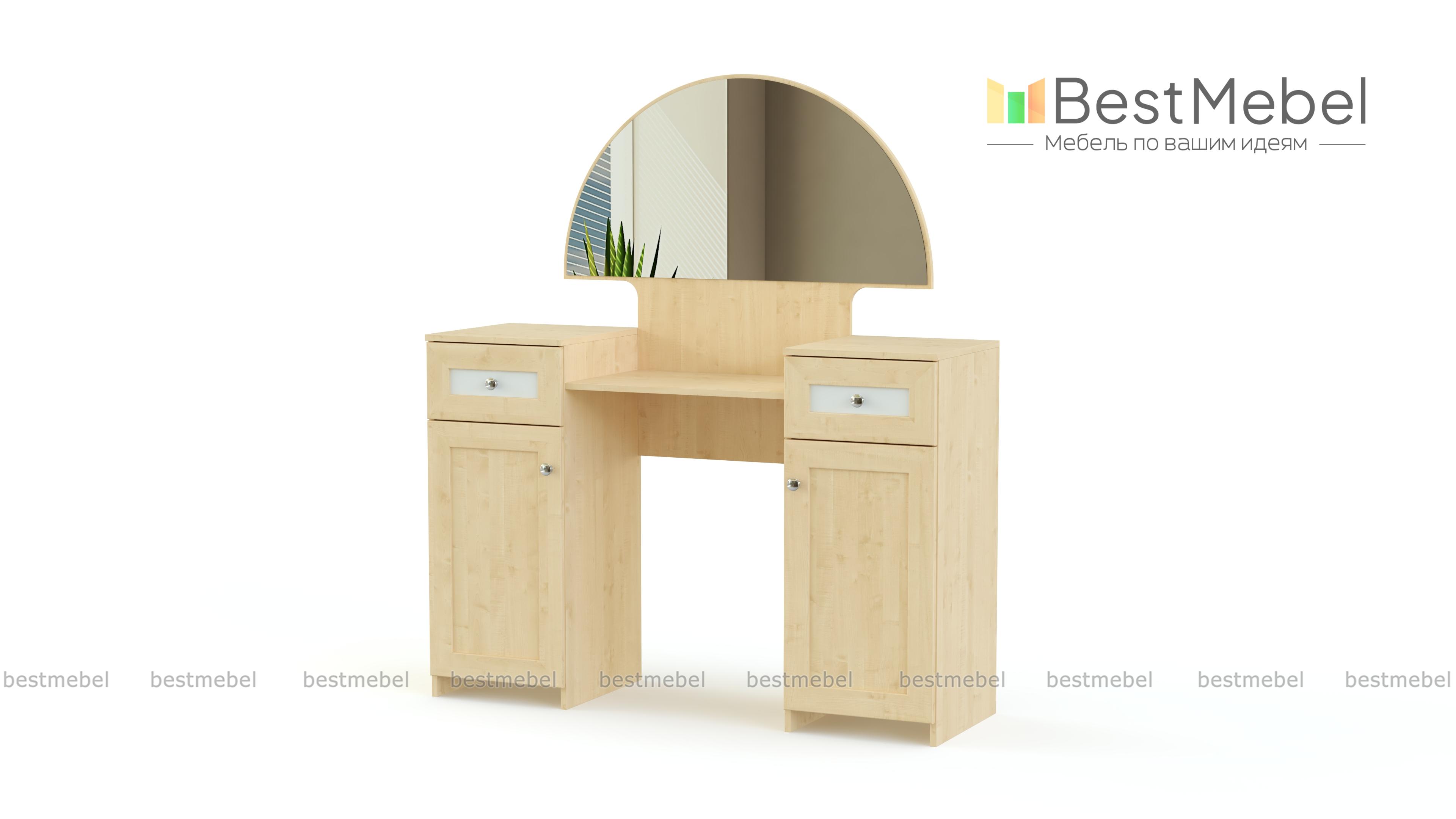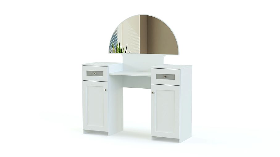 Эта роскошная модель в классическом стиле сделает вашу спальню уютной, а уход за собой – особенно легким и приятным. Красивое полукруглое зеркало для макияжа дополнено полкой под косметику, а также двумя удобными тумбами с выдвижными ящиками и распашными дверцами с декором. Благодаря естественной благородной расцветке, выбрать которую вы сможете на нашем сайте, стильной отделке фасадов и фурнитуре серебристого оттенка туалетный столик Типони 1 BMS выглядит сдержанно и дорого.