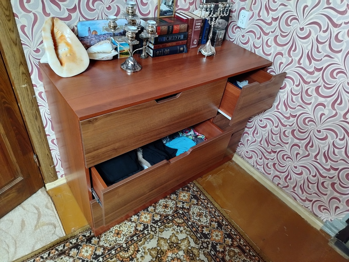 Заказ 00000867485. Приобретали комод. Нужен был длинный. Сайт очень удобный, можно выбрать и цвета и размеры. Понравилось, что есть возможность разного цвета корпуса и фасадов. Изготовили очень быстро, быстрее, чем по договорённости. Доставка вовремя. Качество хорошее, каждая деталь маркирована, легко собирается. Мы всем довольны, спасибо.