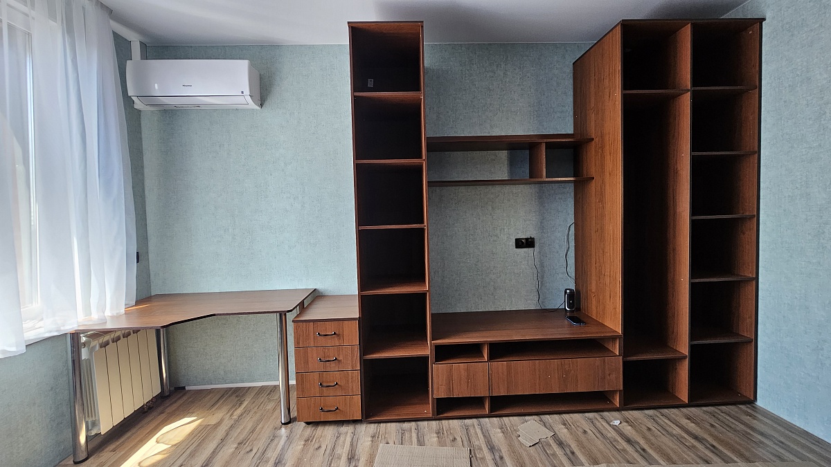 Заказывала ребёнку в комнату. Очень удобно, что можно подогнать размеры под своё помещение. Получилось сделать от стены до стены, как и хотели. Стенка и стол встали идеально! Цвет тоже отлично вписался в интерьер. Ребёнок доволен)Заказы и изделия:Заказ 00000766510, изделие ЭСКИЗ №00000766510 Стенка Ириска 7 Заказ 00000766511, изделие ЭСКИЗ №00000766511 Стол угловой Мармара 1