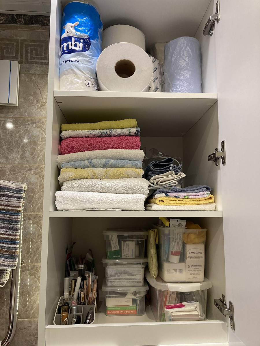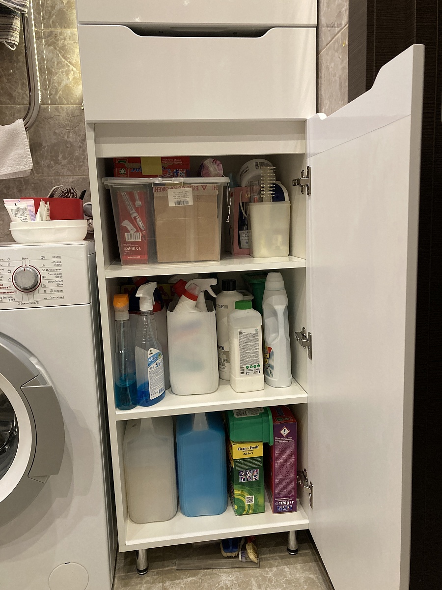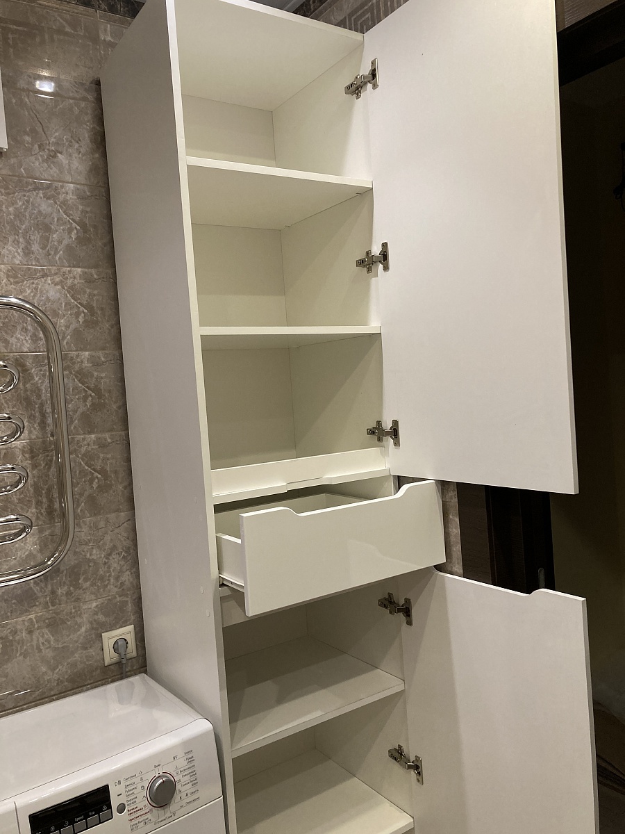 Заказ 00000826805, изделие ЭСКИЗ 00000826805 , пенал для ванной Жако-5 BMS (500x 2318x 450)Шкаф «Жако-5» выполнен фирмой по заданным мной размерам. Учтены все мои пожелания, соблюдены все размеры. Все спроектировано и выполнено отлично и очень быстро. Доставлен в разобранном виде, хорошо упакован, не поврежден, точно в срок. Сборку выполняла самостоятельно, проблем не возникло, все разметки выполнены точно. Очень приятно, что фирма отвечает на все звонки. Я очень довольна покупкой, большое спасибо! PS: при сборке немного изменила положение верхней планки ящика, это увеличило вместимость.