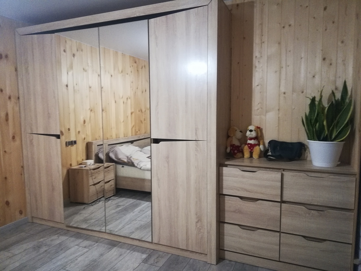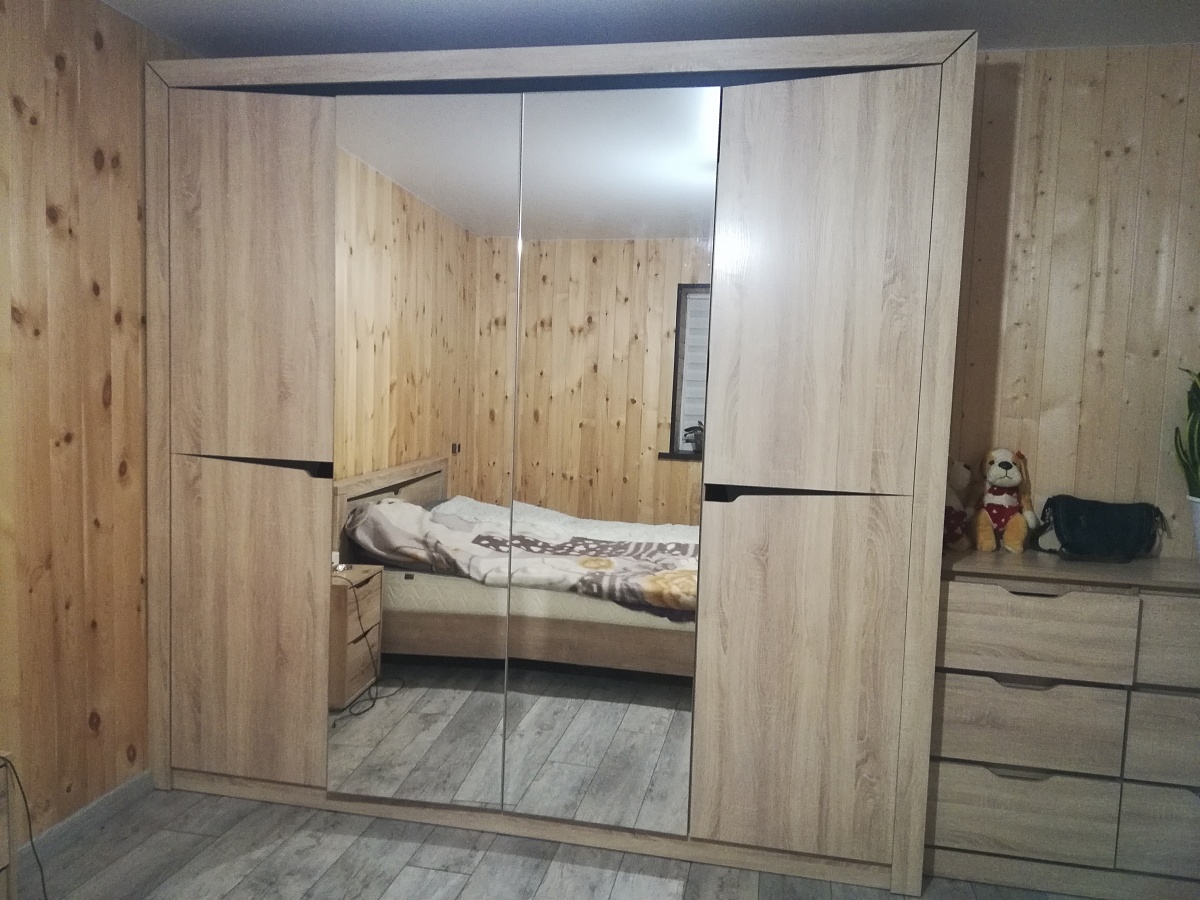 Шкаф брали в цвете венге, в дополнение к стенке Фьюжн. Немного увеличили размеры, чтобы сделать его более местительным. Заказали 2 зеркала на обе двери. Жалею, что не заказала ещё большего размера, потому что шкаф отличный, но вот размер лично под мои нужды маловат. Заказ 766510.