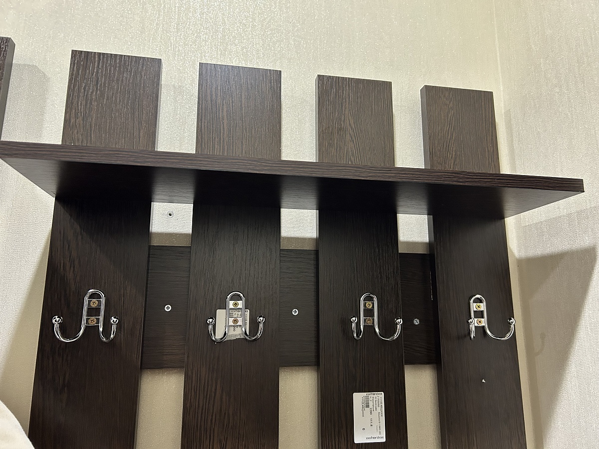 Заказали вешалку в прихожую. Заказ 00000755050. Компактная вешалка. Сверху полочка, можно что-то поставить. Дополнили её внизу крючками, чтобы детям было удобно вешать свои курточки. Инструкция понятная, быстро собрали и повесили. Всем довольны.