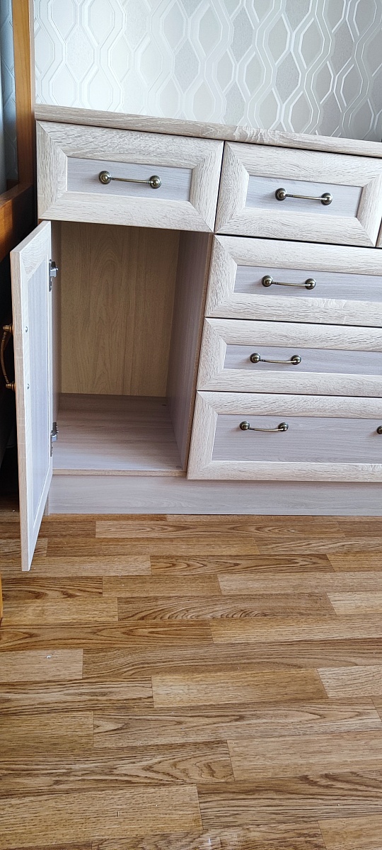 Сам комод хороший. Выполнин по размерам. Всё как надо. Но снимаю одну звезду,т.к в распошной секции на фото и на схеме комода на сайте есть внутри полка,а по факту её нет. Очень обидно.