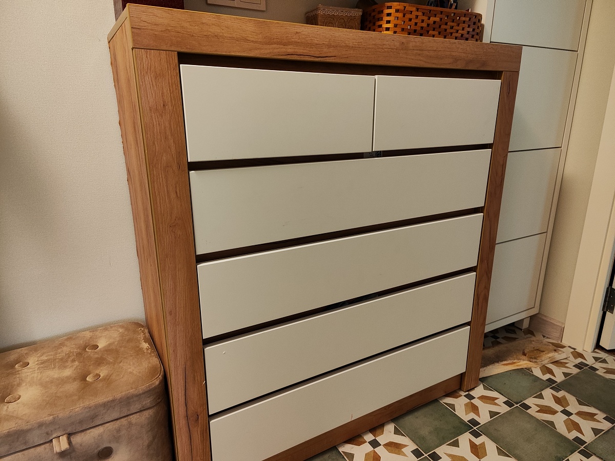 Отличный комод, сделали по моим размерам. Белый и золотистый дуб крафт. Смотрится хорошо.