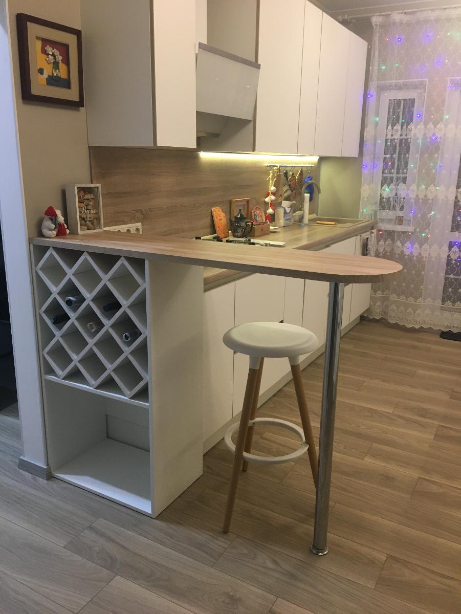 Делала индивидуальный заказ на барную стойку к имеющейся кухне. Всё подошло идеально. Стойка выглядит "как родная".