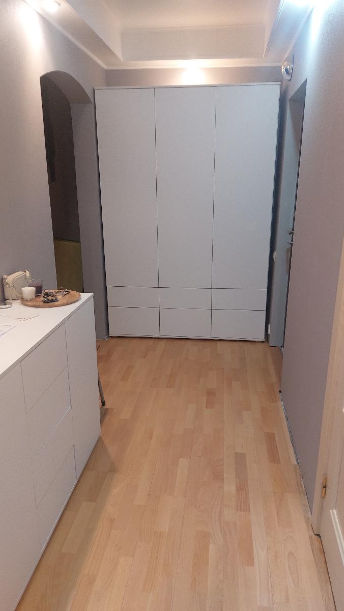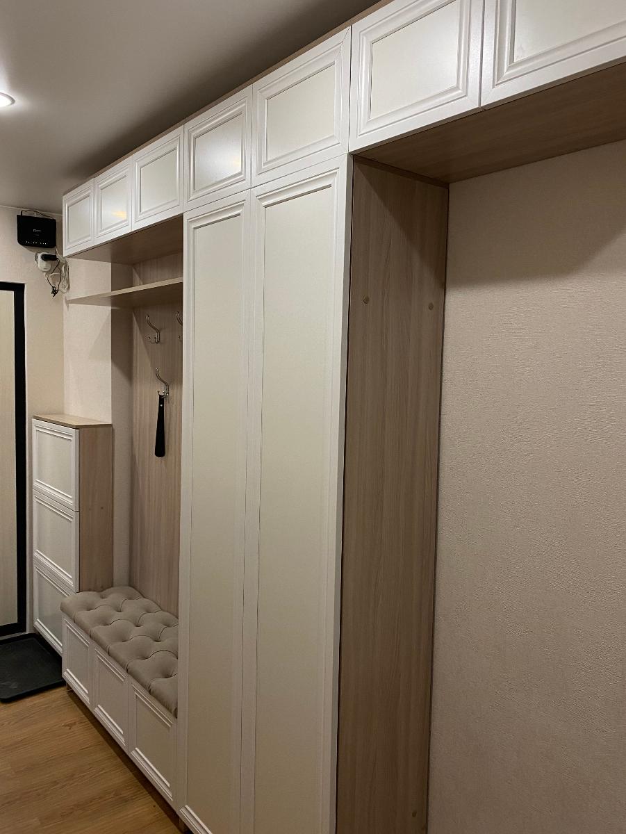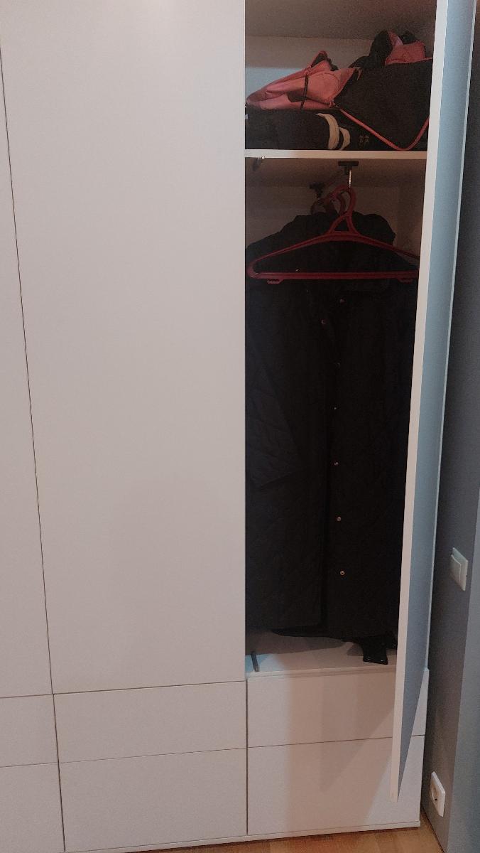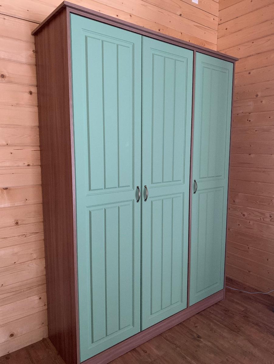 Заказ 00000443939, изделие Распашной шкаф Песня 3 BMS (1500х2100х500) (Платье - Белье (3)), фасады МДФ цвет Болотный софт тач, корпус ЛДСП цвет Ясень Шима Темный.Отличный платяной шкаф. Шкаф изготавливали около месяца. Пришлось подождать, но сейчас по такой цене шкафов хорошего качества не найти. Привезли в хорошей упаковке, порадовала аккуратная доставка. Все детали подписаны, отверстия на нужных местах, вся фурнитура, крепления и комплект для сборки в наличии. Собрали шкаф быстро. Пользуемся 3 месяца. Фурнитура не скрипит, не перекашивается. Шкаф тяжёлый, устойчивый. Свою функцию выполняет на 100%. Вместительный, удобный. Шкаф смотрится очень красиво, красивый цвет фасадов и корпуса. Фасад выбрали из МДФ, матовый и очень приятный тактильно.