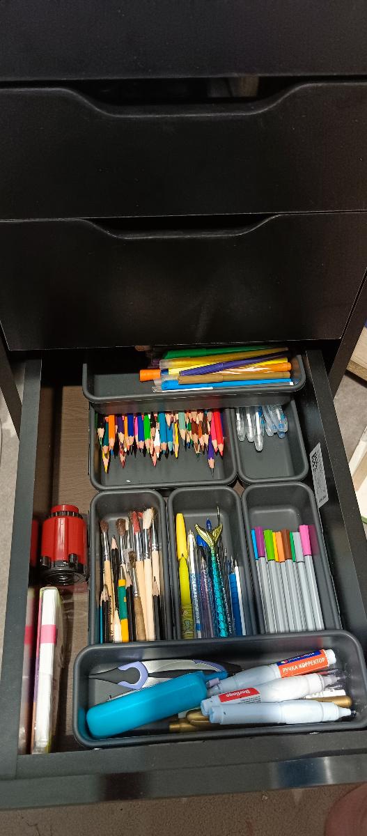 В целом, я доволен покупкой стола, однако, если бы я видел его перед заказом, то внёс бы несколько изменений. Из основных моментов, которые требовали коррекции:Первое, что меня беспокоило, это высота нижней столешницы, она составляла 62 см, но это может зависеть от моего компьютерного кресла, которое достаточно высокое. Для избежания того, чтобы мои колени не упирались в нижнюю столешницу, я решил перезаказать верхнею столешницу, сделав ее шире на 15 см и подняв ее на 5 см выше исходной высоты (теперь она находится на уровне 80 см от пола, а нижняя осталась на уровне тумбочек 62 см). Это также добавило рабочей поверхности, что оказалось очень полезным. Также увеличилось пространство между столешницами, что позволяет удобно размещать предметы и доставать их.Второе, если у вас высокие потолки, то общую высоту стола лучше сделать выше. У меня потолки 2,6 м, а общая высота стола составляет 1,9 м. Изначально я думал, что этого достаточно, но после сборки стола понял, что идеальным вариантом было бы создать стол высотой 2,0 - 2,1 м и с полками для формата A4.Третье, также были проблемы с корпусами ящиков, их отверстия были немного смещены, и внутренние боковые панели выходили наружу на 1,5-2 мм. Я решил эту проблему, пересверлив отверстия и придав им более аккуратный вид.В дополнение к этим изменениям, я также решил внести следующие улучшения:1) Добавил дополнительную полку для монитора, что позволяет убрать мышь и клавиатуру под ней, когда они не используются.2) Расположил дополнительную рабочую поверхность слева над тумбочкой, предназначенную для принтера.3) Ну и в последствии ввиду поднятия и увеличении верхней столешницы относительно нижней, всё же сделаю полку выдвижную для клавиатуры с мышью. В целом, стол интересный и практичный, но мои коррекции и пожелания связаны с моими личными предпочтениями. Однако, несмотря на эти небольшие недочеты, стол остается функциональным и удовлетворяет моим потребностям.