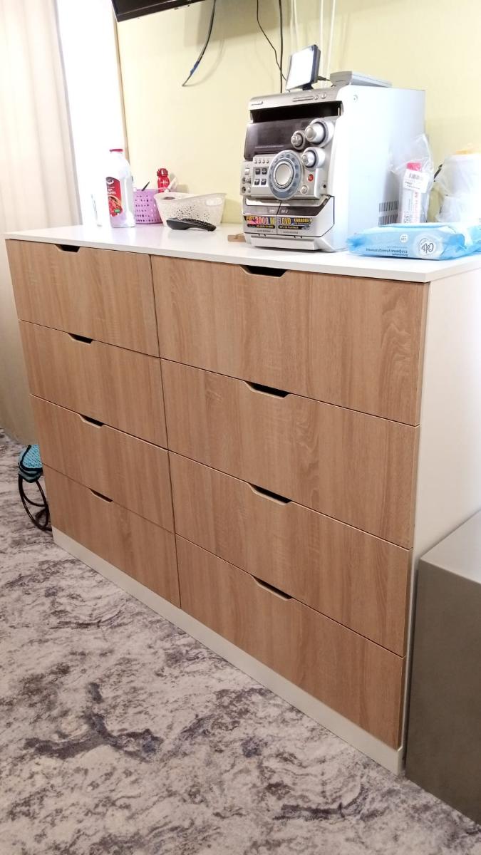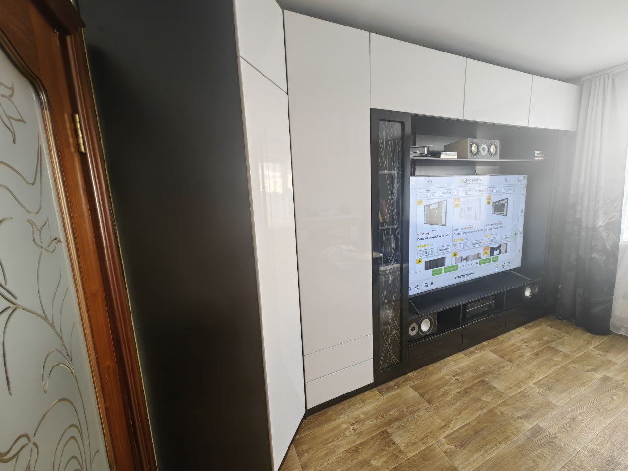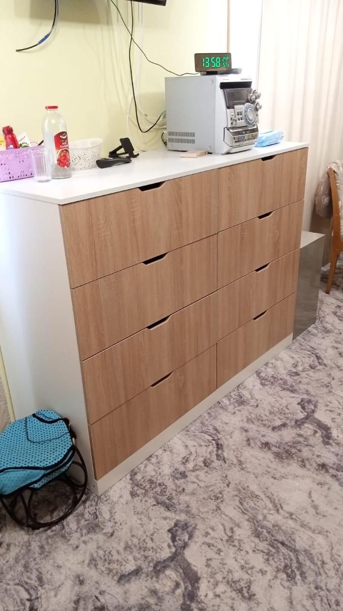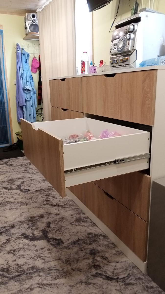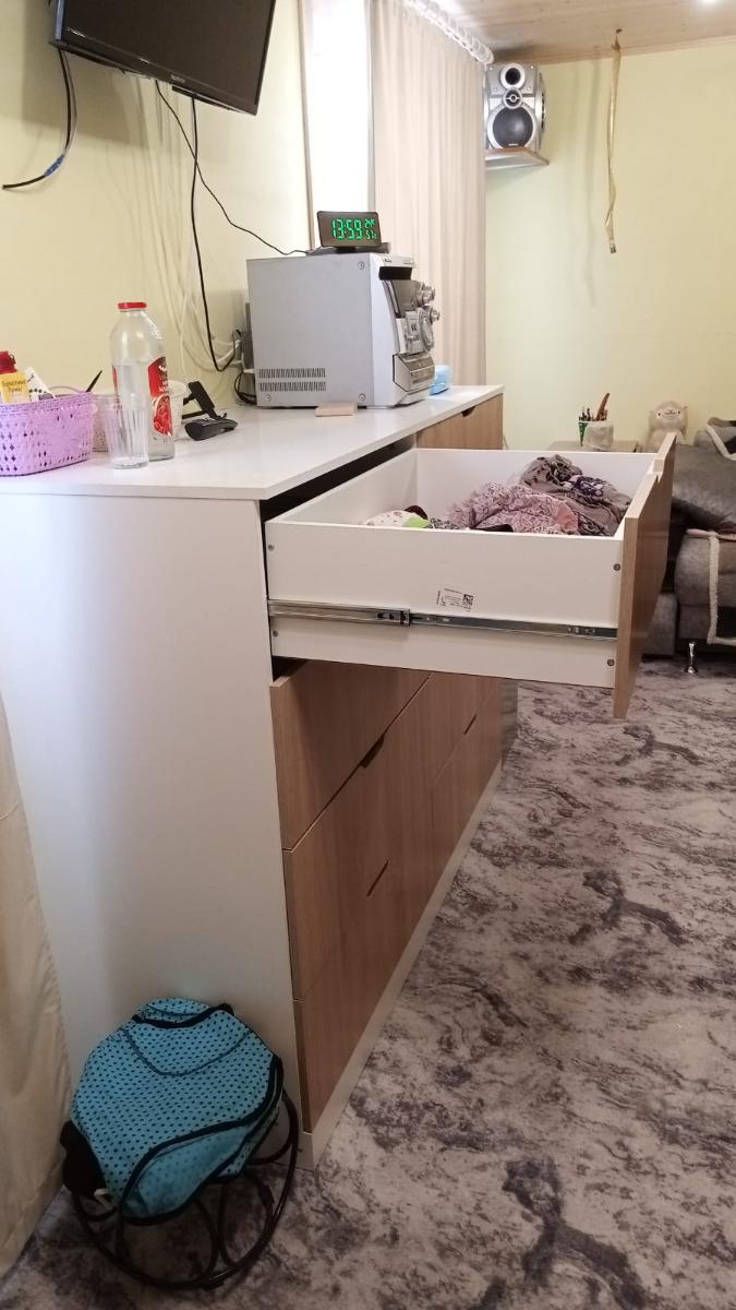 Обычно отзывы не пишу, но тут сделаю исключение. Гостиную делали по моему проекту, хотел по максимум до потолка и в ширину комнаты. По ширине зазор до трубы составил всего 3 миллиметра, до потолка 10 сантиметров. Мебель поднимали грузчики около часа (В лифт не помещалось из-за большого размера), их было очень жалко, т.к. очень тяжелые коробки были. Когда уже её начал распаковывать сборщик (Александр – вообще мега человек, в одиночку всё это собрал, я сперва ему не поверил, что он один её соберёт). Из-за размера под потолок её собирали уже на месте стоя (Собрать на полу не получилось бы из-за высокого размера). Так же в квартире кривые полы, и сборщик как мог это исправил (Вернее исправил очень хорошо). В итоге я остался очень доволен. Был нюанс, что в комплект не доложили петли угловой, но сборщик сам об этом уведомил компанию, и мне их довезли и сборщик приехал поставил дверь. Мебель очень добротная (недавно маме обустраивал квартиру и видел, что продаётся в других местах). Всем советую!