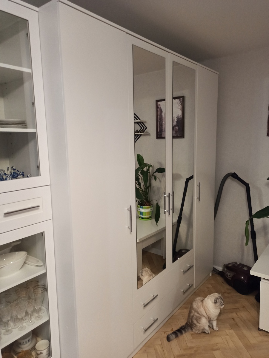 Номер заказа 1212518 Шкаф распашной Арт 4 BMSСделали шкаф под свои размеры 900/350/2400, изготовили за 10 дней, доставка 2 дня.Шкаф пришел целый, собирается легко. При сборке обнаружили что на одной двери отметки для петель не совпадают.Немного изменили положение полок под себя ,добавили штангу и ручки.Шкаф смотрится стильно и дорого, шкафом остались довольны