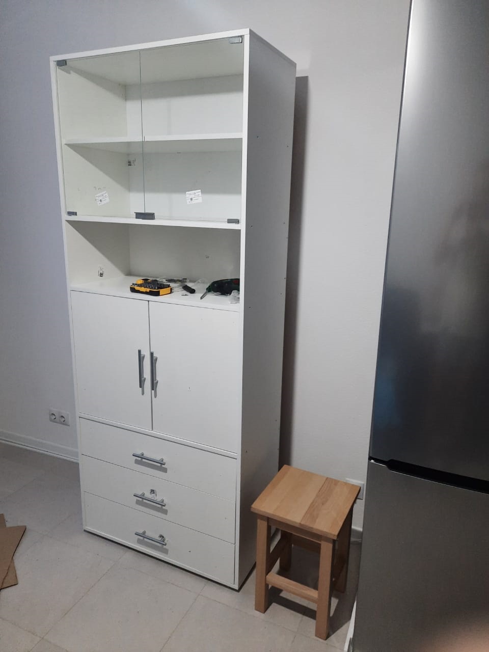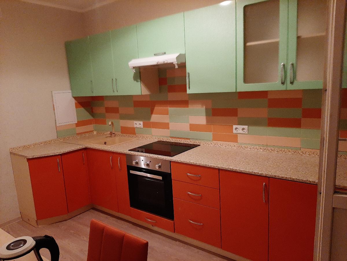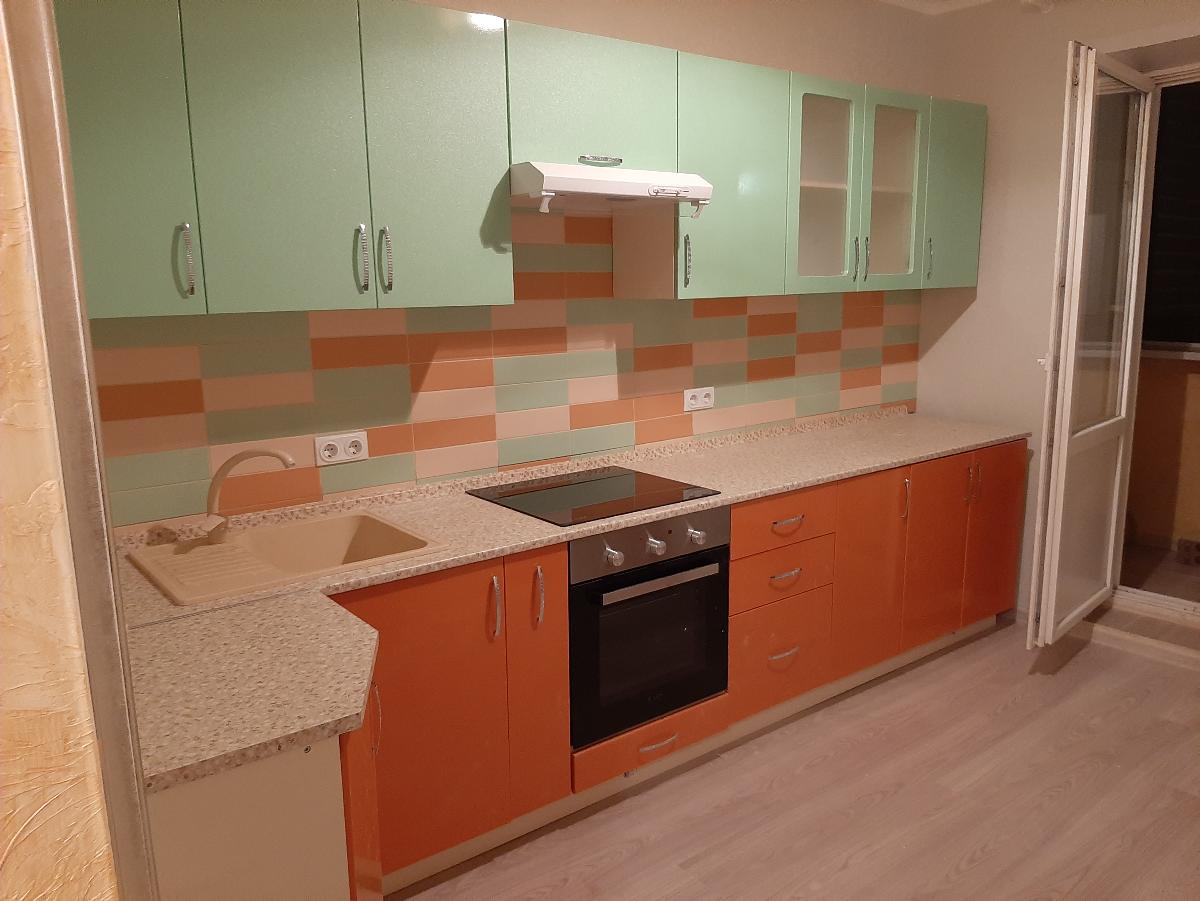 Кухня удобная. Огромный плюс, что можно сделать любую конфигурацию. Хотелось именно зелено-оранжевую и чтобы низ уголовой, а верх прямой. Сандра BMS подошла идеально. Немного дороговато обошлась сборка. Но сами бы не собрали. Все нормально функционирует. Нареканий нет.