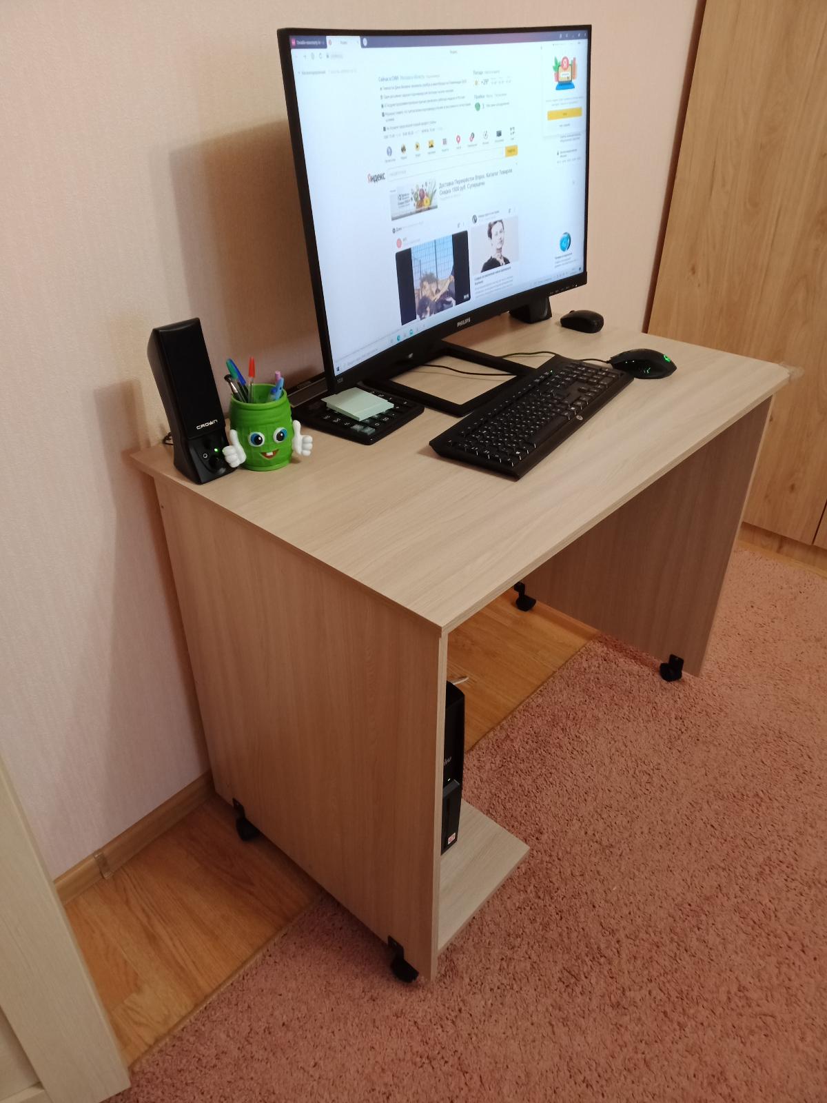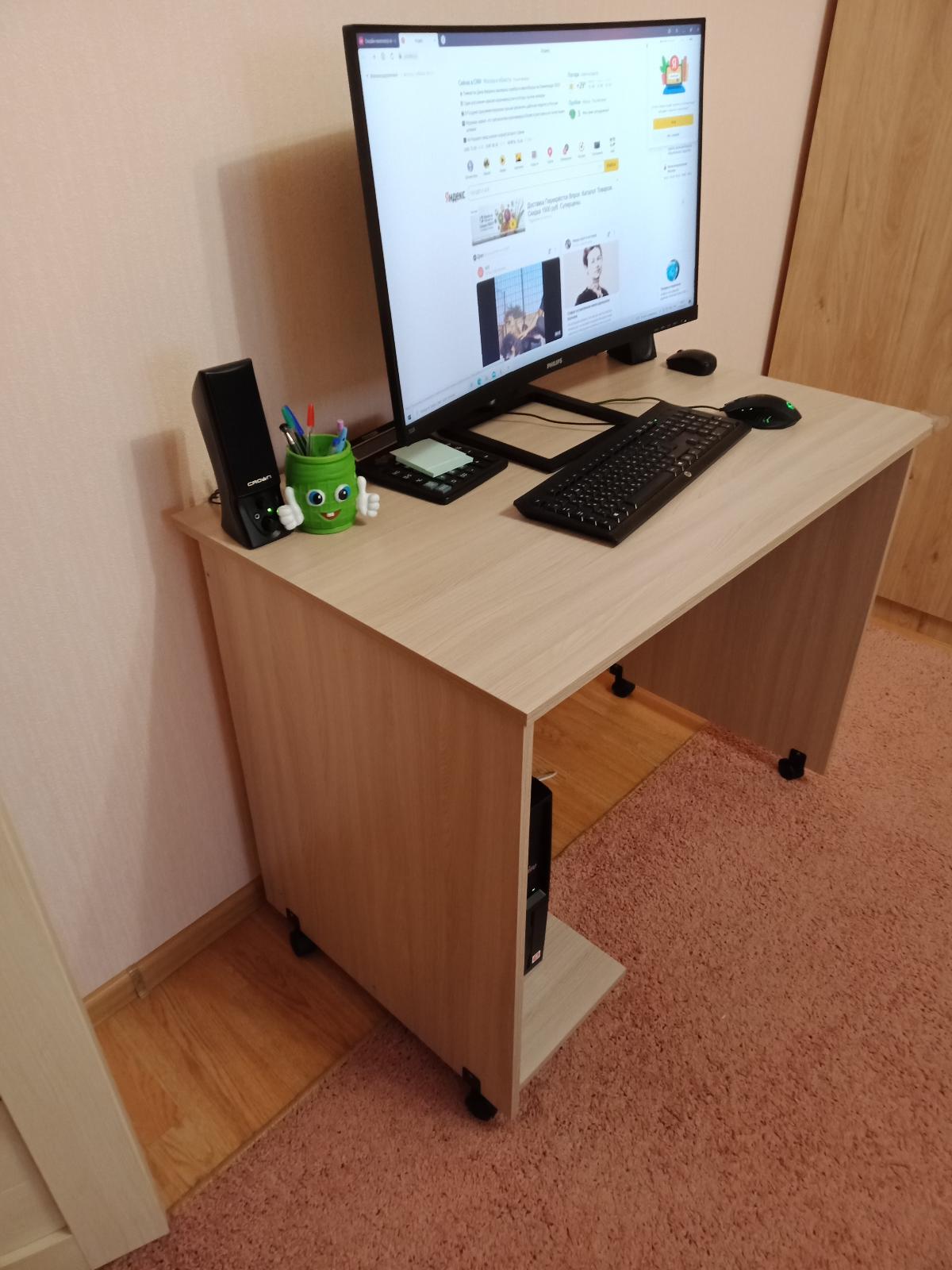 Купила в июле данную модель с размером столешницы 1 м. Хотя это нестандартный размер через день мне уже доставили готовый стол. Муж собрал стол самостоятельно. Все необходимое было в комплекте. Покупкой довольны