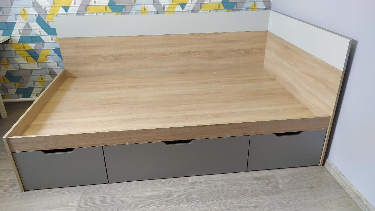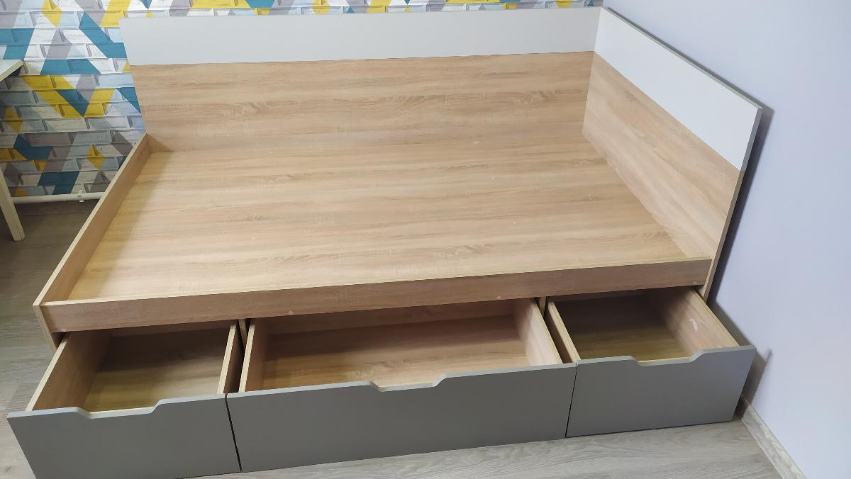 Кровать очень понравилась. Заказывали размер 120х200. Очень хороший вариант для установки в угол. Вместительные ящики. Собирали сами. Посмотрим, как кровать покажет себя в эксплуатации.  Отдельное спасибо за возможности сайта, вежливость и помощь операторов и менеджеров, быструю доставку.