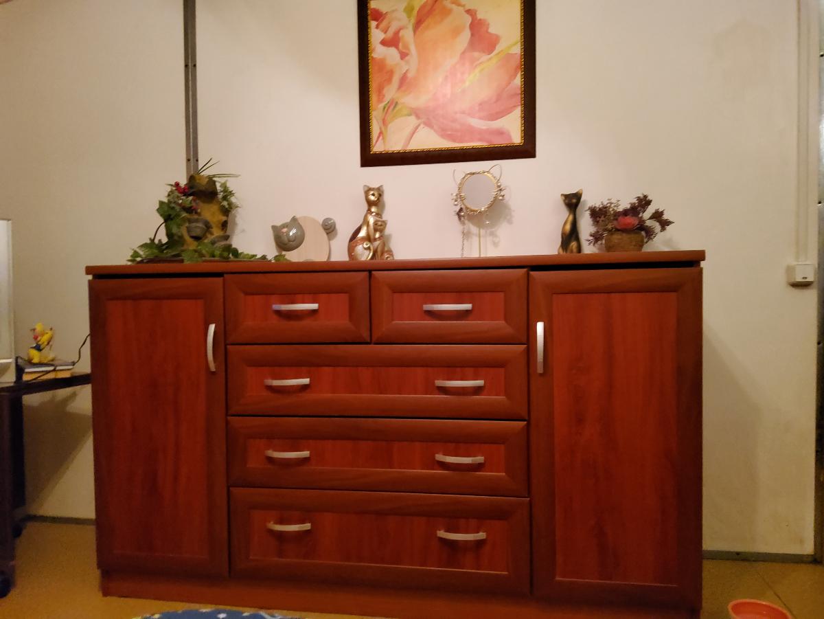 Очень довольна комодом.Цвет точно такой же,как я хотела.Отличное качество материала.Очень удобный и функциональный комод.Долго искала такой комод в магазинах,но были или похожие очень дорогие,или не было именно такого размера и цвета.Большое спасибо за своевременную доставку и отличное качество!Буду покупать мебель только у Вас!