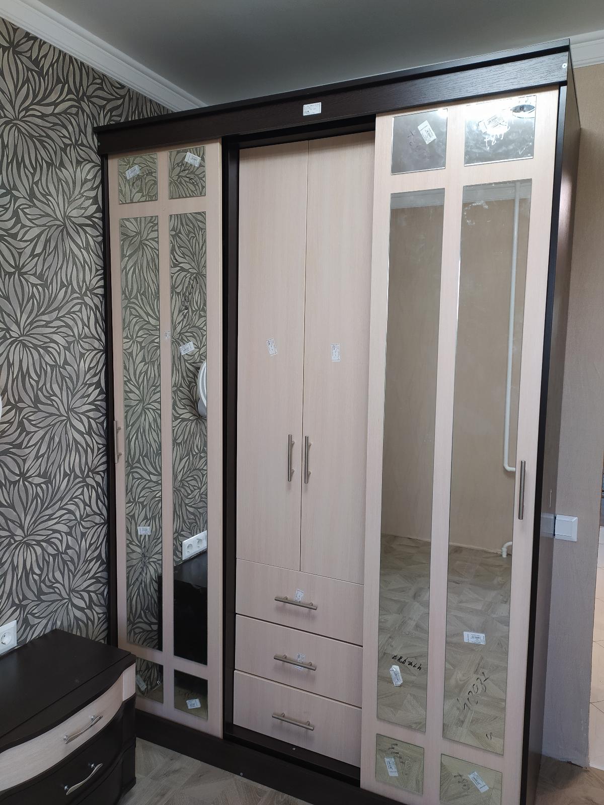Шкаф выглядит шикарно. В отзыве Екатерины все правильно описано, чтобы пользоваться центральной частью надо боковые дверцы закрыть, но меня это особо не напрягает. Дети им не пользуются, он стоит в маленькой спальне нашей. Я бы рекомендовала к этому шкафу сборку заказывать от магазина.