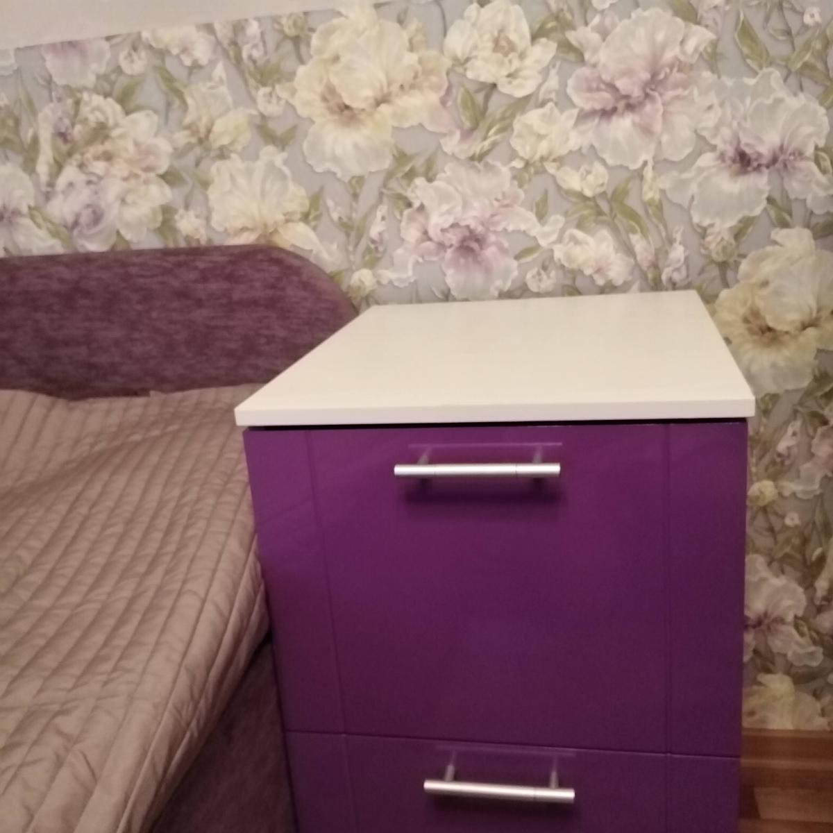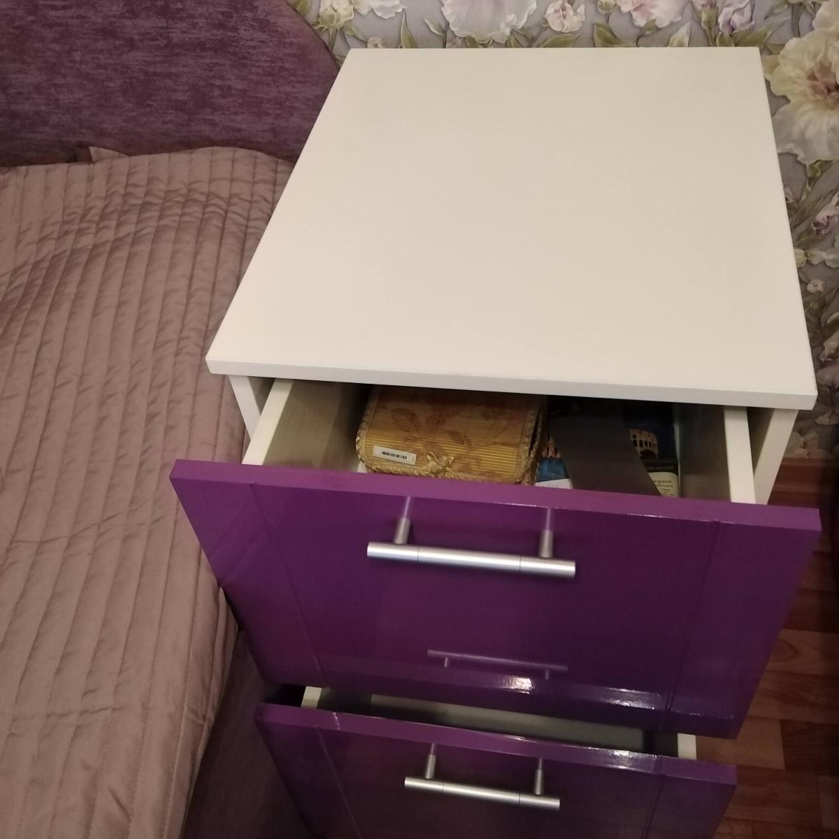 Заказала фиолетовую тумбочку,только на этом сайте,кажется,возможен любой цвет на выбор.Получилась высокая,как и хотела.Собрали сами.