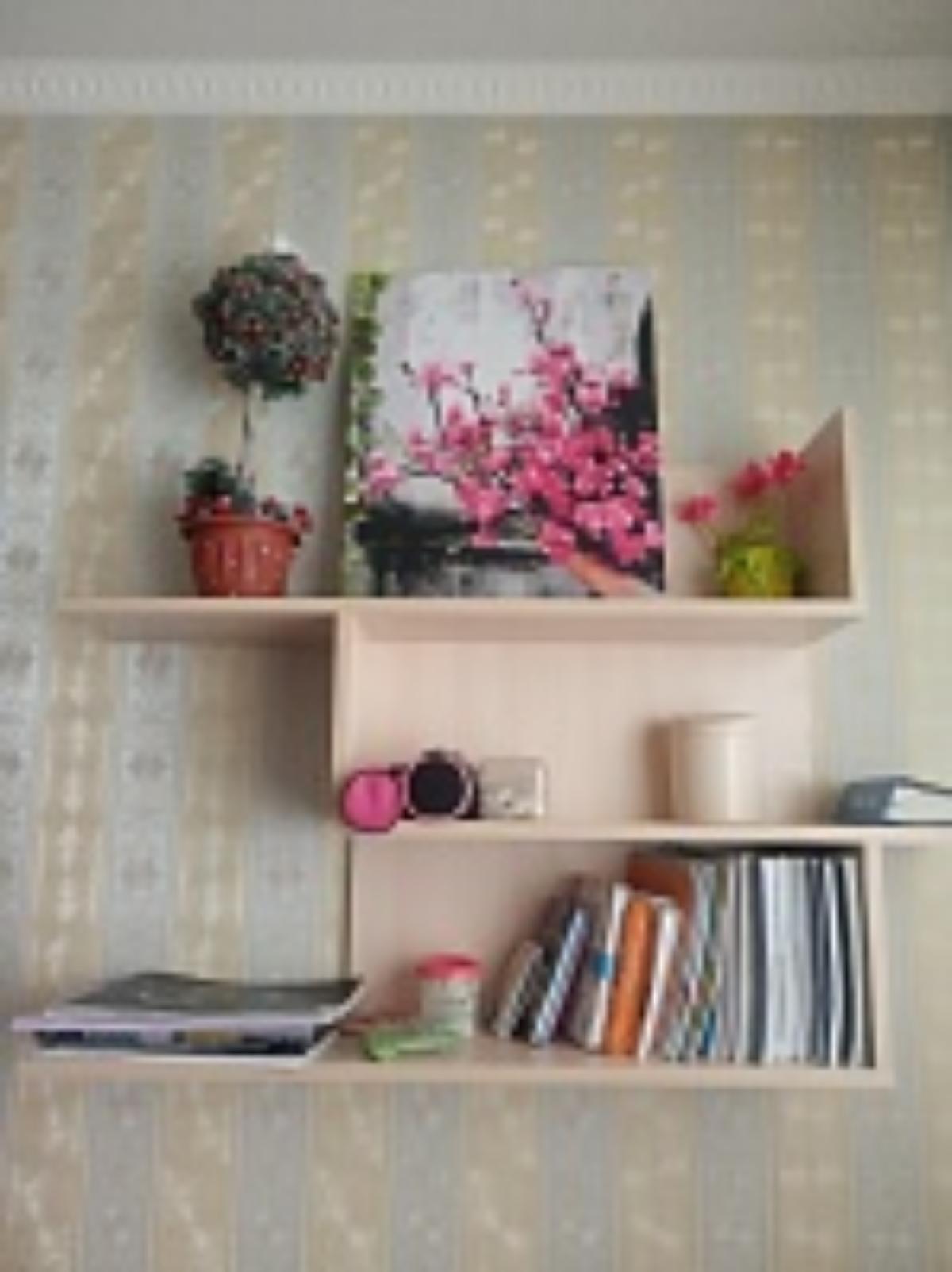 Моей радости просто нет предела. Полка досталась в подарок. Она так классно вписалась в интерьер (до этого заказала стол с тумбочкой такой же расцветки). Очень красиво смотрится, можно разместить кучу мелочи. Полка очень необычная и удобная.  (Заказ 00000603352)