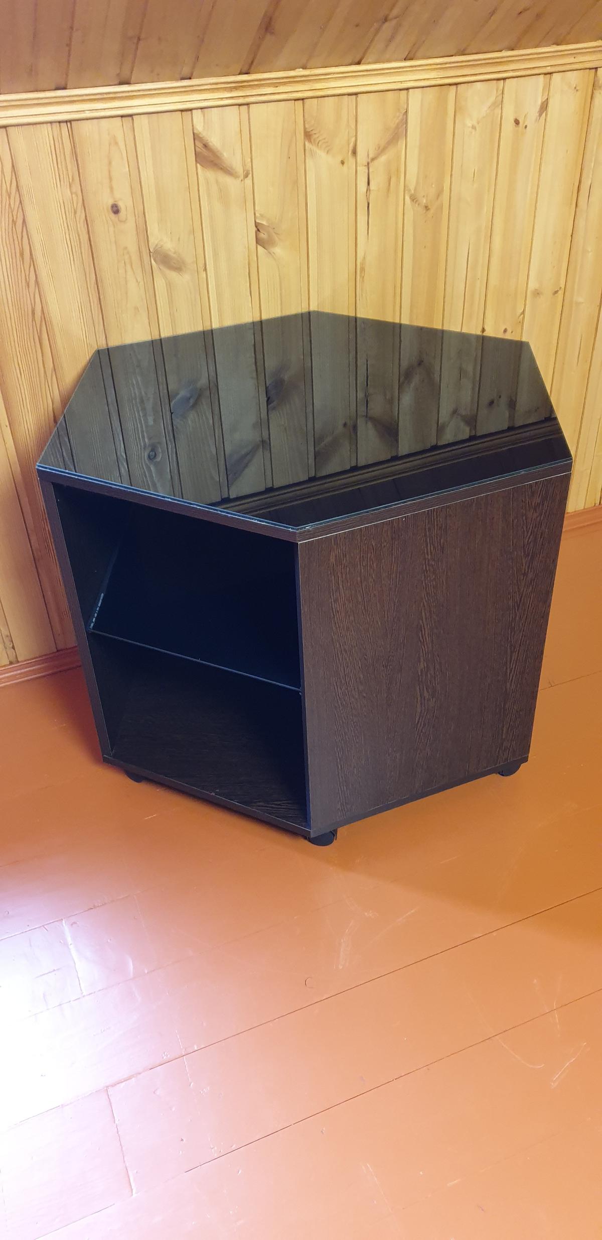 Оригинальный столик, практичный. Полочка тоже стеклянная. Удобно, что можно выбрать самим цвет и размер. Собирали сами, быстро. Доставили в удобное время.